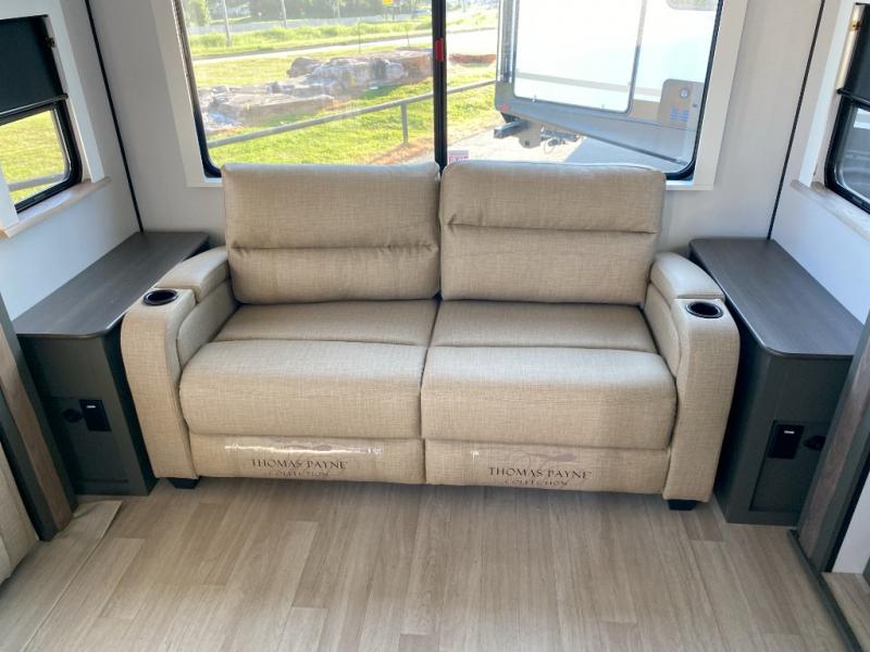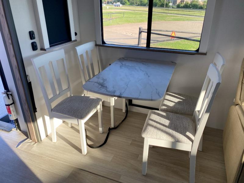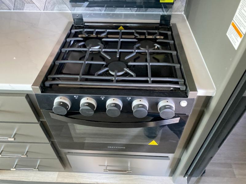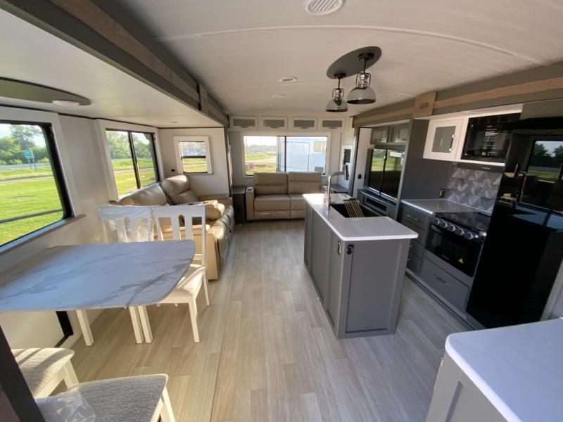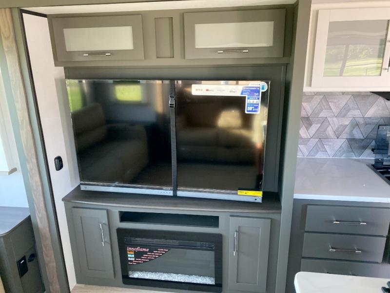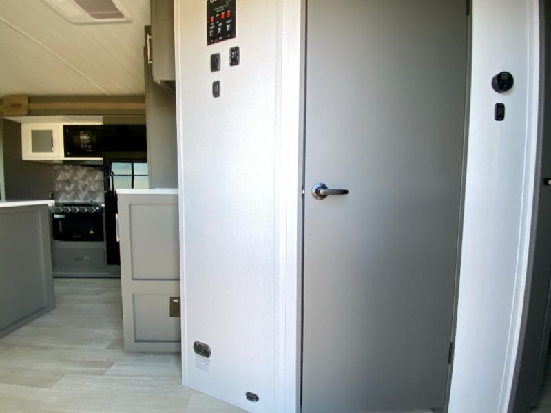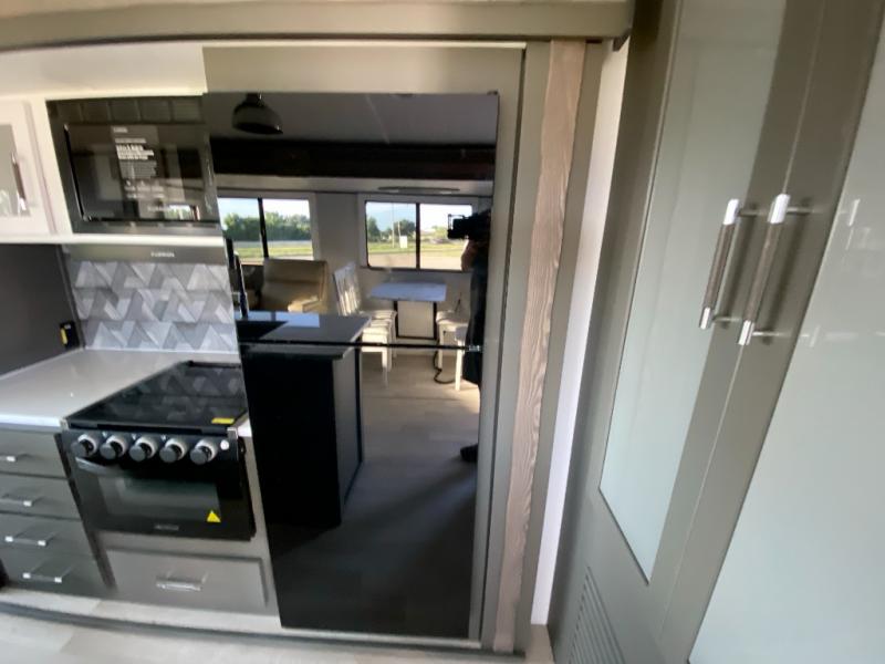 You'll be camping in style with this trailer in tow. You will wake up each morning on a king bed slide out, and there is a closet up front to easily get dressed. A wardrobe with TV prep is also found in the bedroom, along with washer/dryer prep to make wash day easier than ever. If you had guests stay over, they'll be waking up on the tri-fold sofa in the rear living area. Once everyone is ready for the day, you can make breakfast on the three burner cooktop or in the microwave oven, and there is a 10 cu. ft. refrigerator where milk and eggs can go back in. This Bullet kitchen also includes a kitchen island, a pantry, plus a hutch for ample storage space!