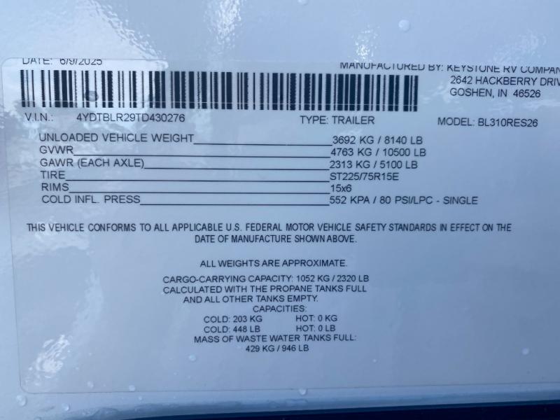 New 2026 Keystone RV Bullet 310RES Travel Trailer