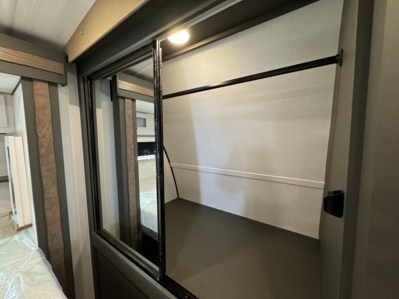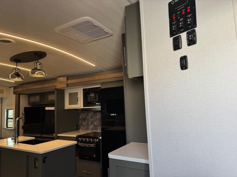 You'll be camping in style with this trailer in tow. You will wake up each morning on a king bed slide out, and there is a closet up front to easily get dressed. A wardrobe with TV prep is also found in the bedroom, along with washer/dryer prep to make wash day easier than ever. If you had guests stay over, they'll be waking up on the tri-fold sofa in the rear living area. Once everyone is ready for the day, you can make breakfast on the three burner cooktop or in the microwave oven, and there is a 10 cu. ft. refrigerator where milk and eggs can go back in. This Bullet kitchen also includes a kitchen island, a pantry, plus a hutch for ample storage space!