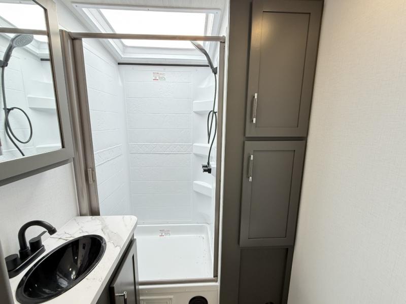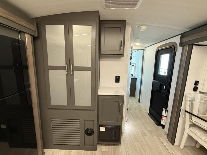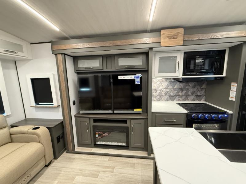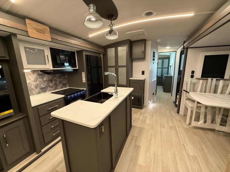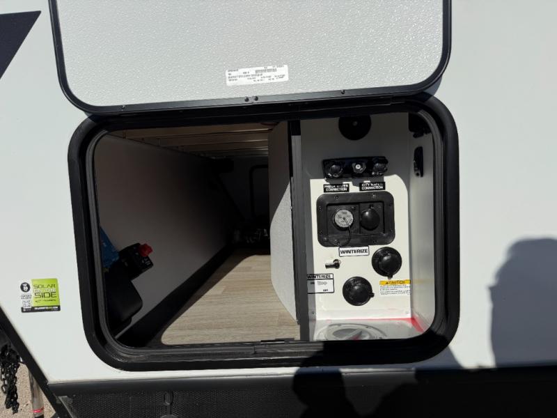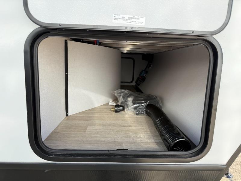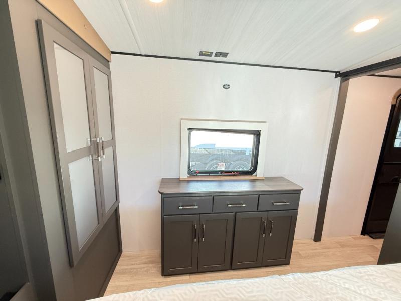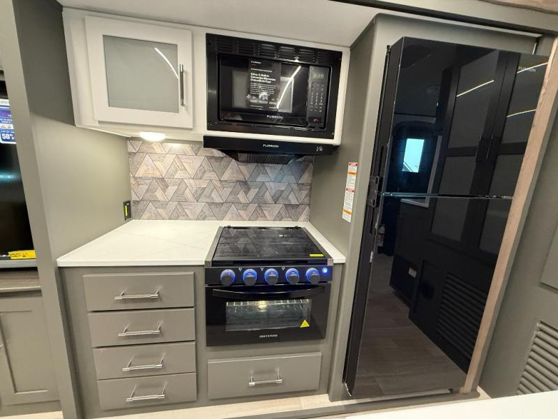 You'll be camping in style with this trailer in tow. You will wake up each morning on a king bed slide out, and there is a closet up front to easily get dressed. A wardrobe with TV prep is also found in the bedroom, along with washer/dryer prep to make wash day easier than ever. If you had guests stay over, they'll be waking up on the tri-fold sofa in the rear living area. Once everyone is ready for the day, you can make breakfast on the three burner cooktop or in the microwave oven, and there is a 10 cu. ft. refrigerator where milk and eggs can go back in. This Bullet kitchen also includes a kitchen island, a pantry, plus a hutch for ample storage space!