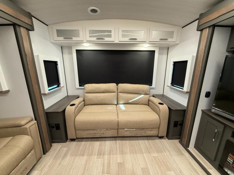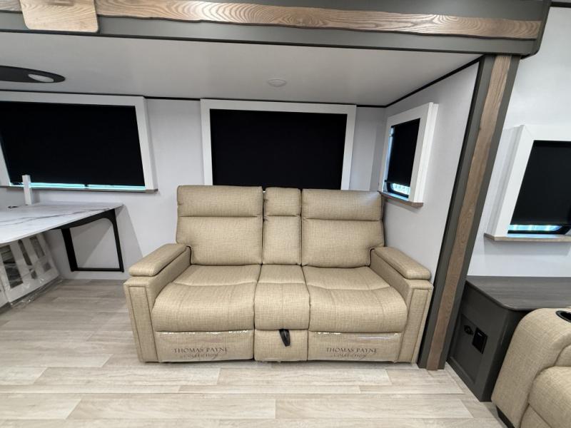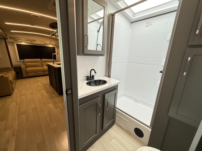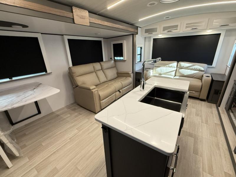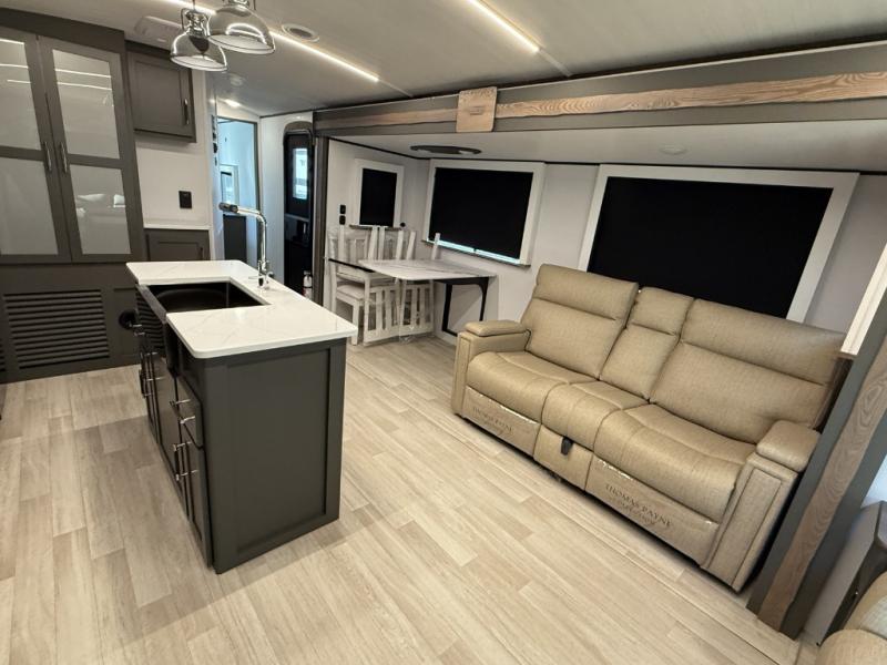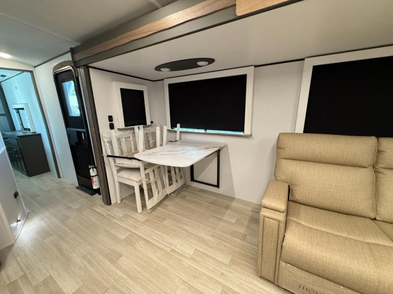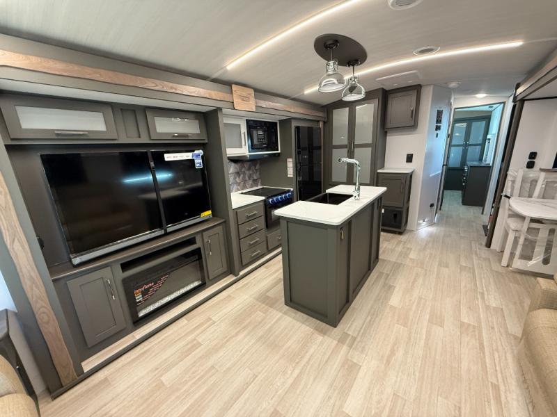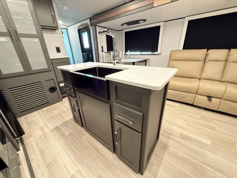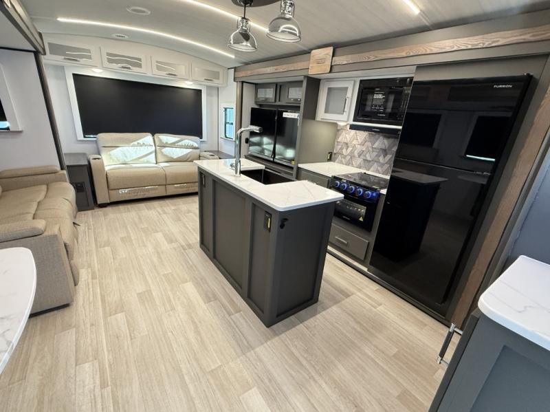 You'll be camping in style with this trailer in tow. You will wake up each morning on a king bed slide out, and there is a closet up front to easily get dressed. A wardrobe with TV prep is also found in the bedroom, along with washer/dryer prep to make wash day easier than ever. If you had guests stay over, they'll be waking up on the tri-fold sofa in the rear living area. Once everyone is ready for the day, you can make breakfast on the three burner cooktop or in the microwave oven, and there is a 10 cu. ft. refrigerator where milk and eggs can go back in. This Bullet kitchen also includes a kitchen island, a pantry, plus a hutch for ample storage space!