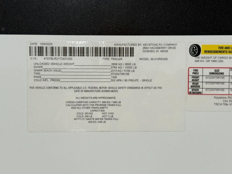 New 2026 Keystone RV Bullet 310RES Travel Trailer