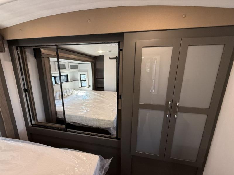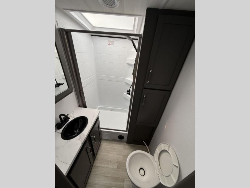 You'll be camping in style with this trailer in tow. You will wake up each morning on a king bed slide out, and there is a closet up front to easily get dressed. A wardrobe with TV prep is also found in the bedroom, along with washer/dryer prep to make wash day easier than ever. If you had guests stay over, they'll be waking up on the tri-fold sofa in the rear living area. Once everyone is ready for the day, you can make breakfast on the three burner cooktop or in the microwave oven, and there is a 10 cu. ft. refrigerator where milk and eggs can go back in. This Bullet kitchen also includes a kitchen island, a pantry, plus a hutch for ample storage space!