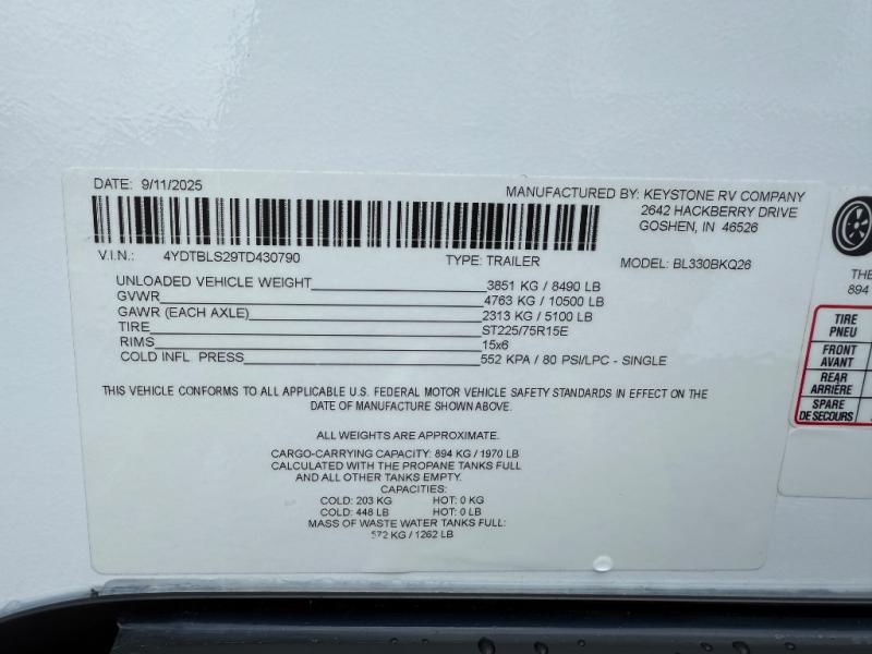 New 2026 Keystone RV Bullet 330BKQ Travel Trailer