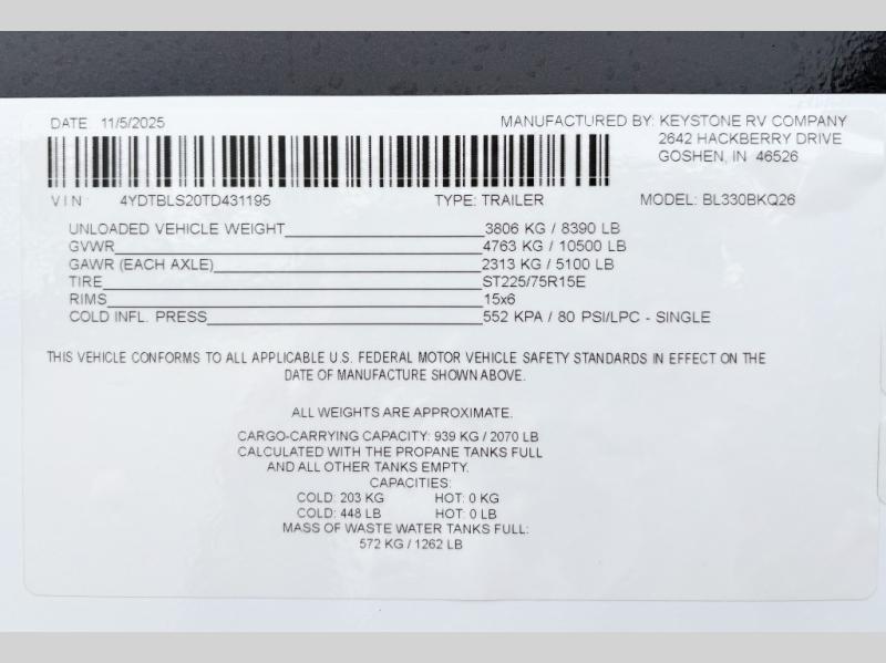 New 2026 Keystone RV Bullet 330BKQ Travel Trailer