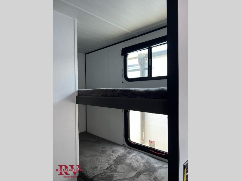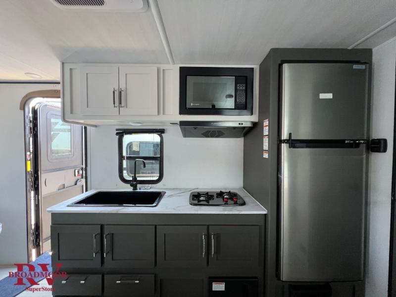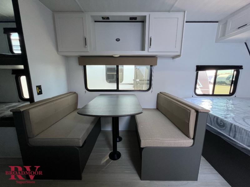 Trips to the Grand Canyon are made comfortable in this travel trailer for five. You will enjoy your own queen bed up front with a wardrobe for your clothes. The kids or your guests will love the bunk beds right next to the full bath, and there is also a booth dinette that can serve as both dining and sleeping space. Prepare all your meals in the microwave oven or use the cooktop, and the 8 cu. ft. refrigerator will be perfect for all your perishables.