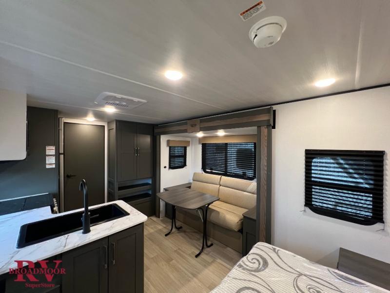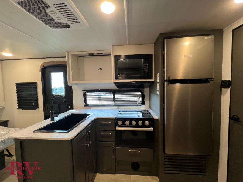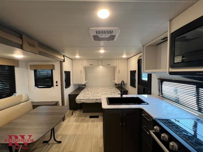 Camping trips just got sweeter in this travel trailer for three! There is a jack knife sofa slide out that will provide additional interior space, along with sleeping space for a guest. The front queen bed includes a privacy curtain when you need to get dressed, and there are dual nightstands to keep your things organized. A full kitchen will let you cook meals each day, and the spacious full rear bath means you won't have to use the camp's facilities in the middle of the night!