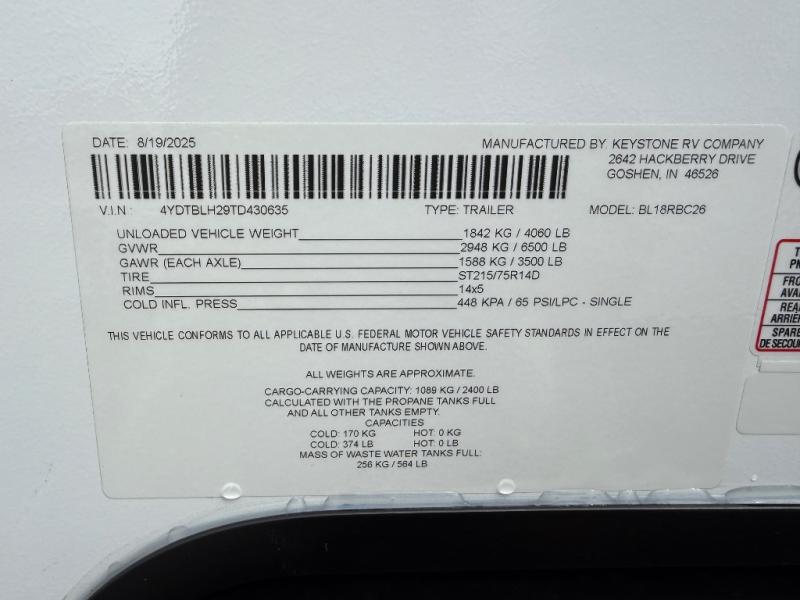 New 2026 Keystone RV Bullet Classic 18RBC Travel Trailer