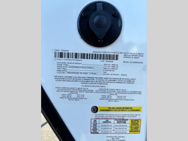 New 2026 Keystone RV Bullet Classic 1900RDWE Travel Trailer