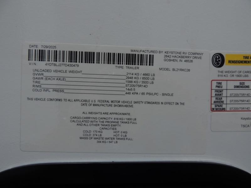 New 2026 Keystone RV Bullet Classic 21RKC Travel Trailer