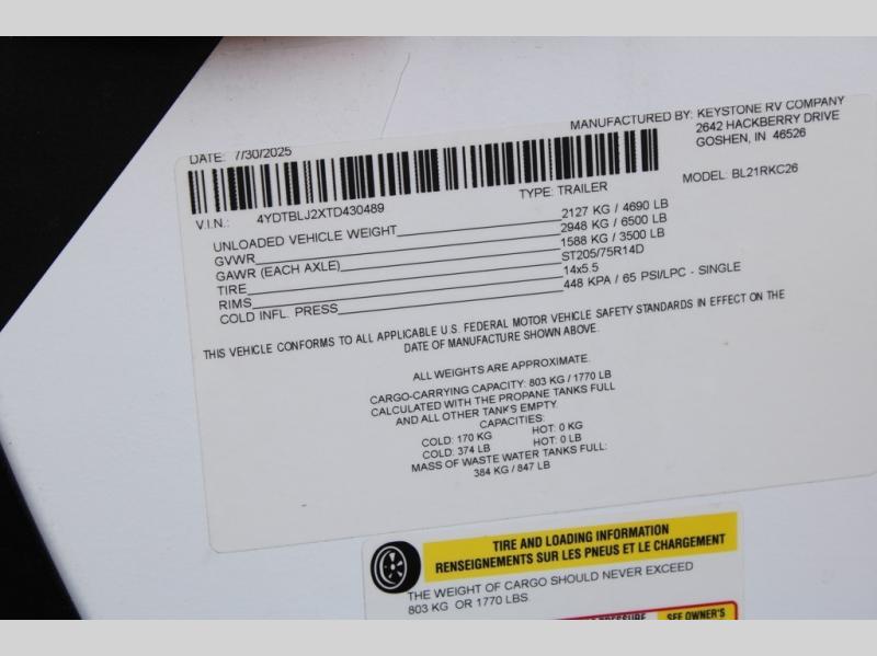 New 2026 Keystone RV Bullet Classic 21RKC Travel Trailer
