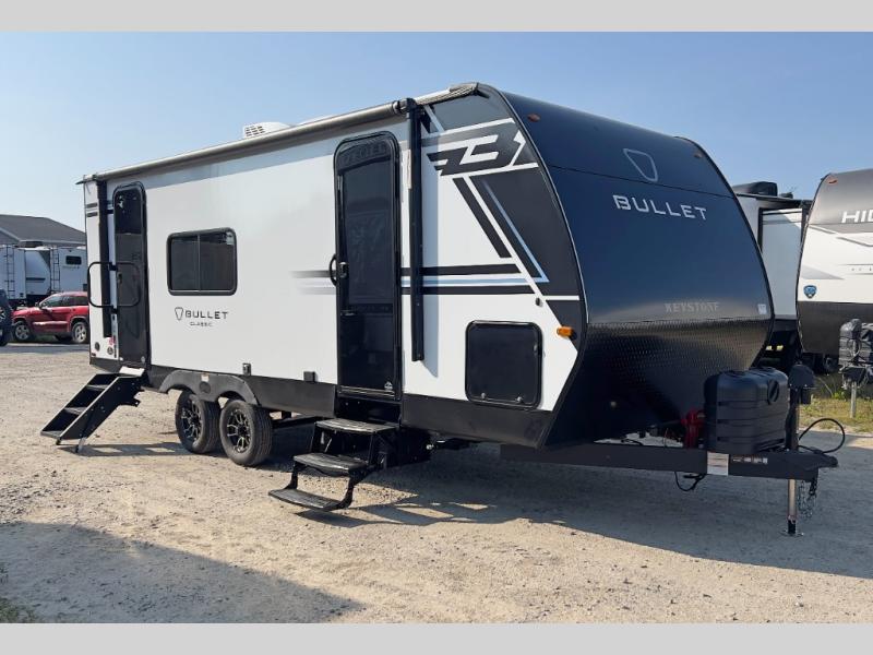With any Bullet Classic travel trailer by Keystone, you can be sure to make memories at the campground! The durable construction means you can enjoy your RV for years to come, and the variety of floorplans let you pick the one that's just right for you! Each model includes full bath and kitchen amenities, convenient storage spaces, plus comfortable seating and sleeping arrangements. The hassle-free exterior features make camping easier than ever, so come check them out!