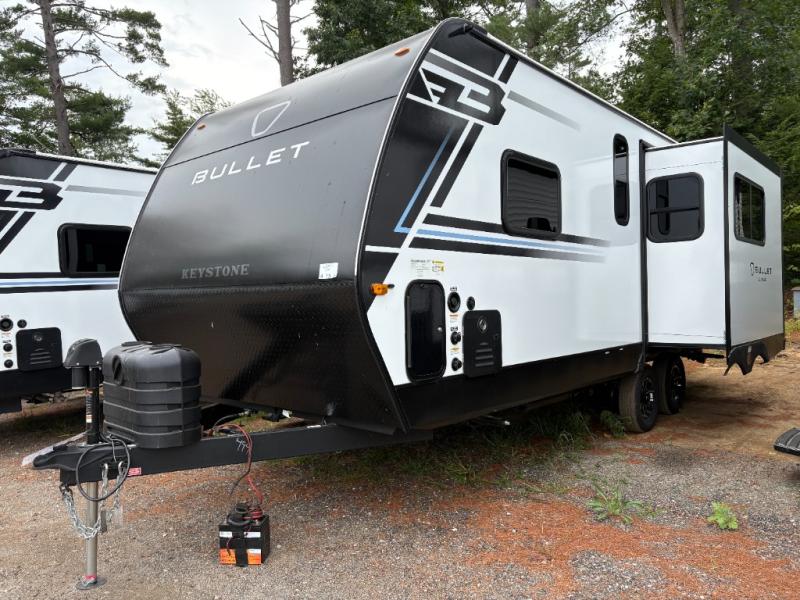 With any Bullet Classic travel trailer by Keystone, you can be sure to make memories at the campground! The durable construction means you can enjoy your RV for years to come, and the variety of floorplans let you pick the one that's just right for you! Each model includes full bath and kitchen amenities, convenient storage spaces, plus comfortable seating and sleeping arrangements. The hassle-free exterior features make camping easier than ever, so come check them out!