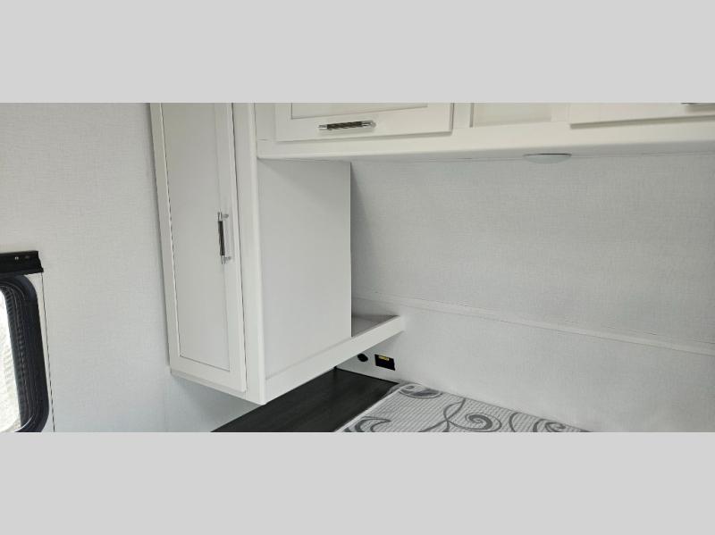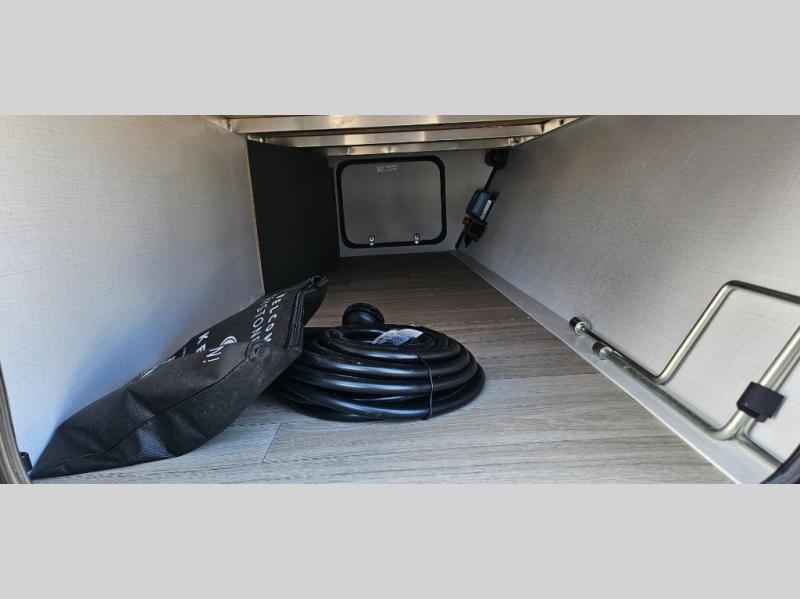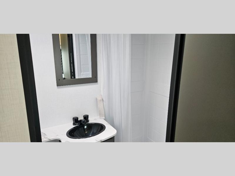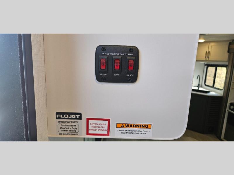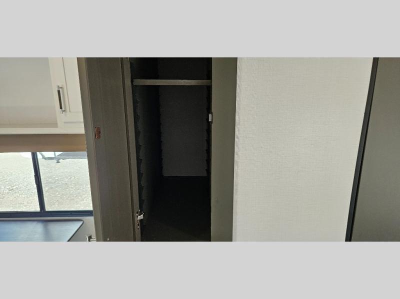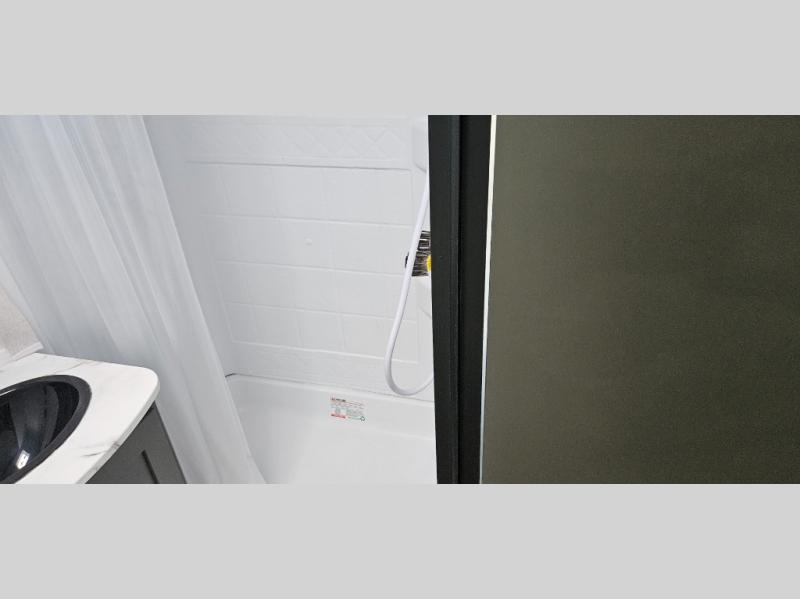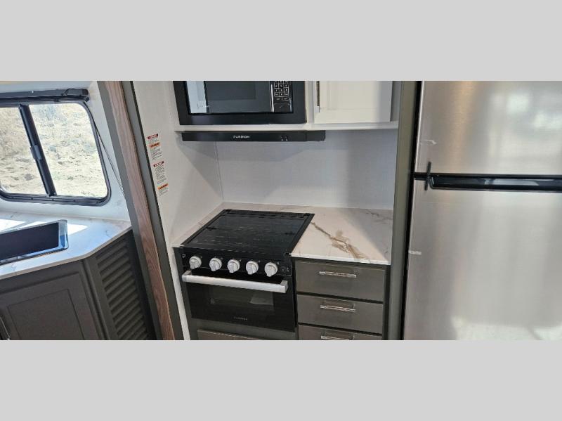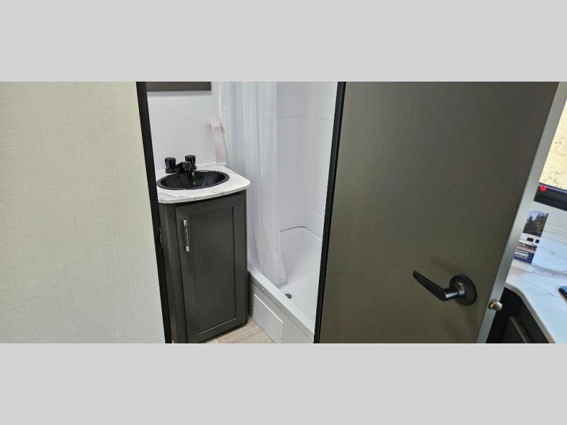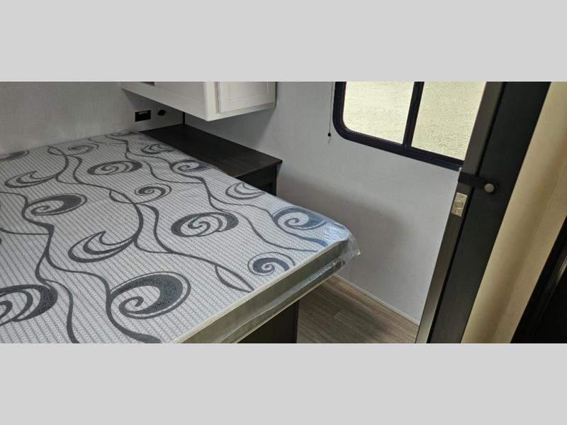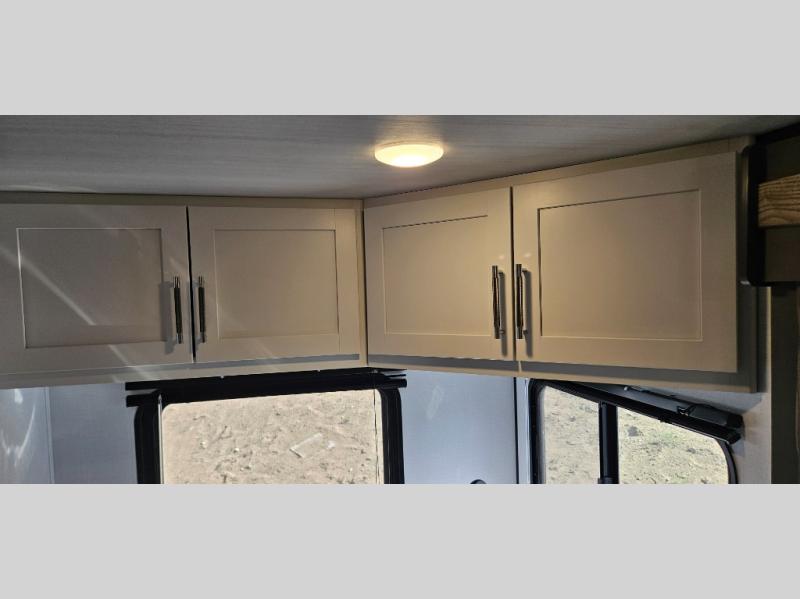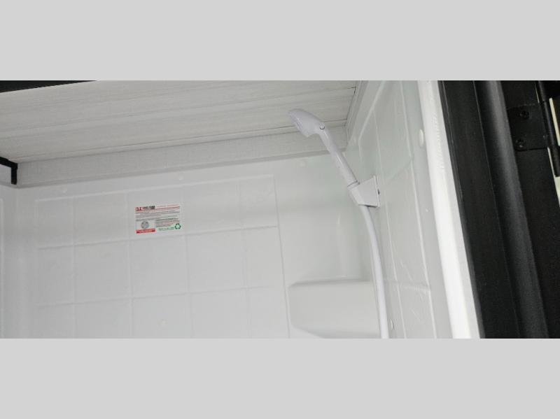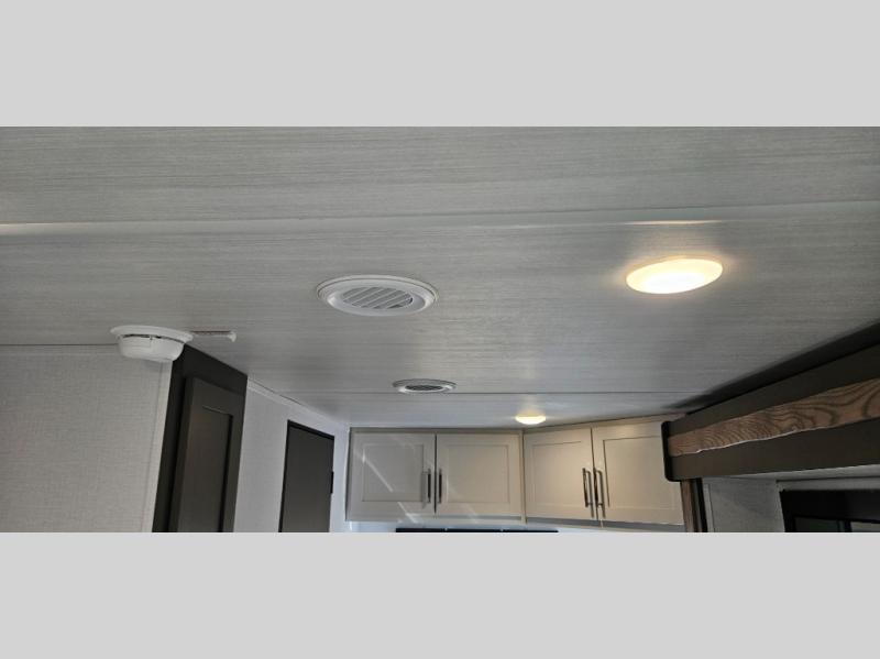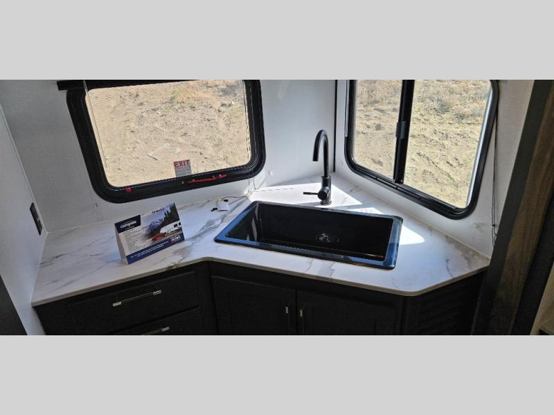 This travel trailer with a large slide out is sure to meet all your needs. When you arrive at the campground, you can put out the patio awning, unload the pass-thru storage, and relax in your camp chairs. The cooktop and microwave oven in the rear corner kitchen will let you make lunch for everyone, and the 8 cu. ft. refrigerator and pantry will help you keep food stocked. You will love having a queen bed to sleep on each night, and the booth dinette and jack knife sofa provide seating and sleeping space for guests!