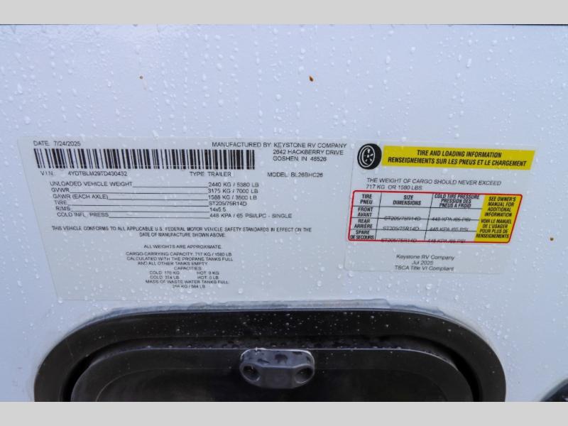 New 2026 Keystone RV Bullet Classic 26BHC Travel Trailer