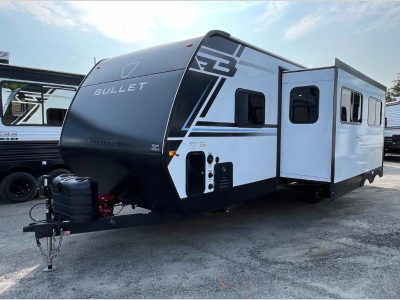With any Bullet Classic travel trailer by Keystone, you can be sure to make memories at the campground! The durable construction means you can enjoy your RV for years to come, and the variety of floorplans let you pick the one that's just right for you! Each model includes full bath and kitchen amenities, convenient storage spaces, plus comfortable seating and sleeping arrangements. The hassle-free exterior features make camping easier than ever, so come check them out!
