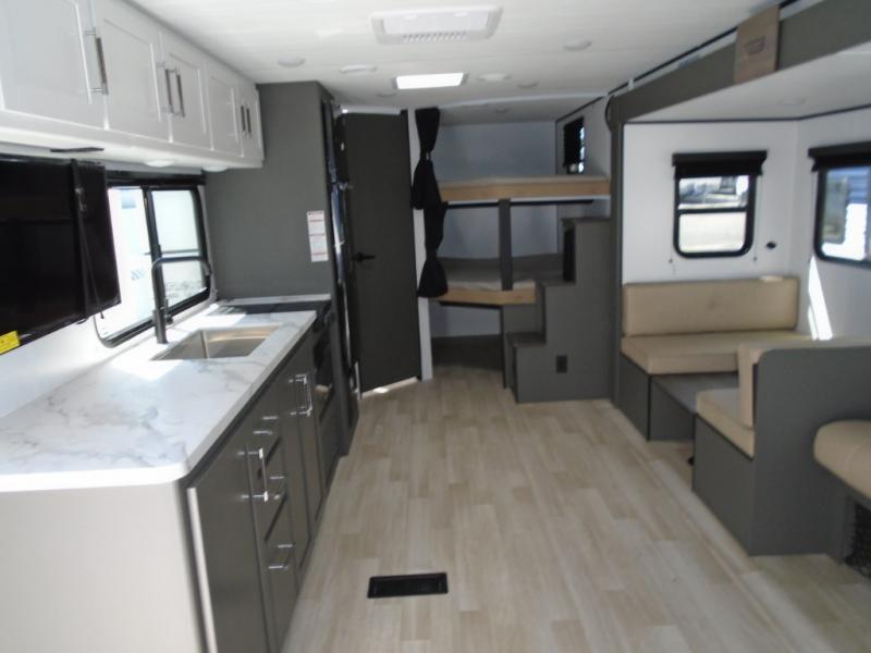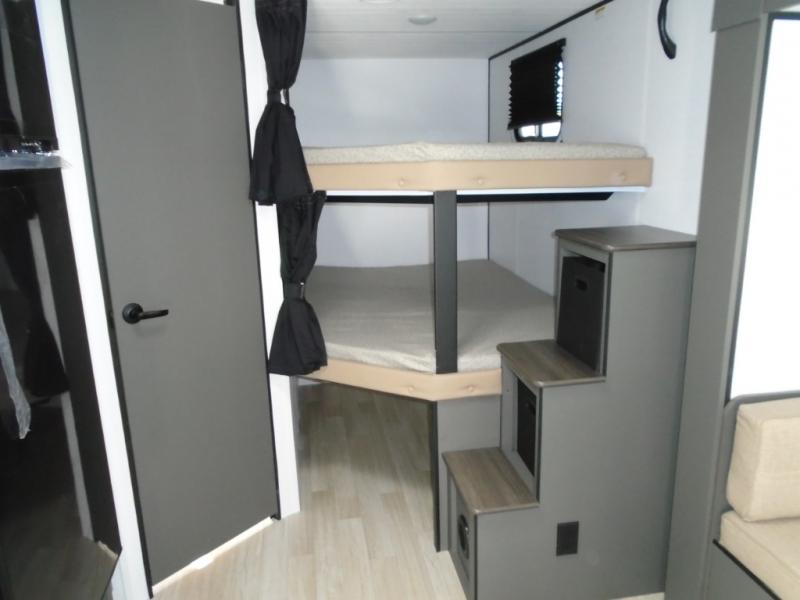 Great double over bunk layout with 2 entry doors! Dry Weight only 5,390 lbs!