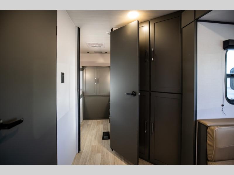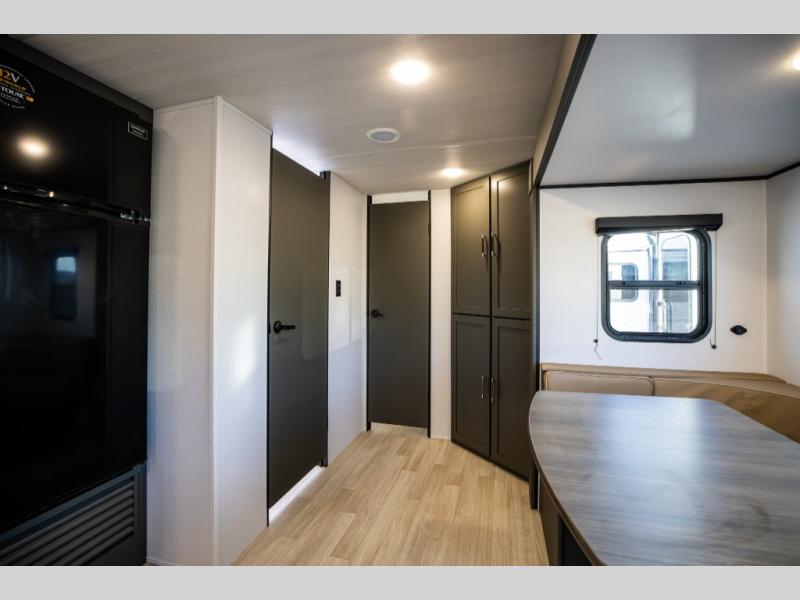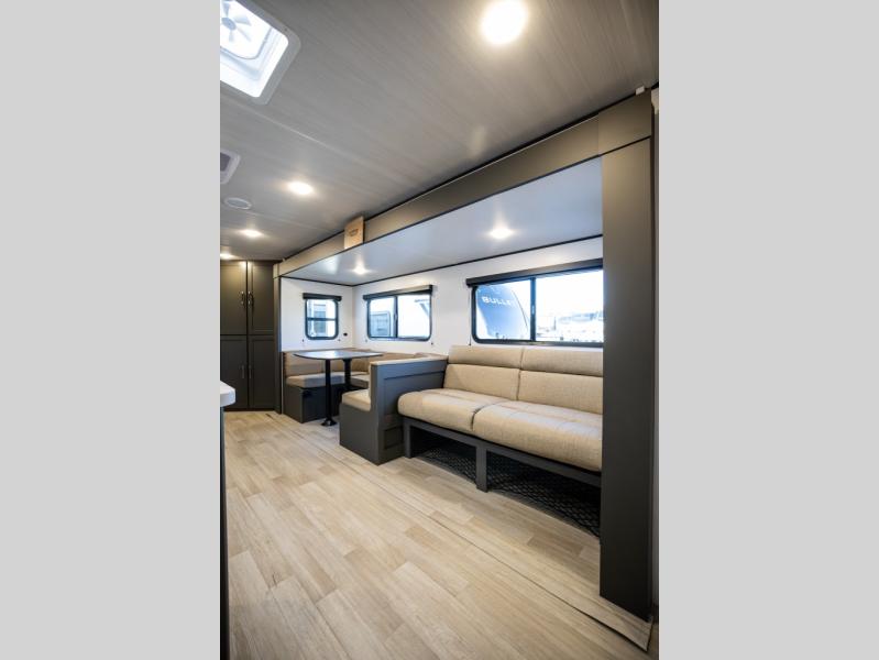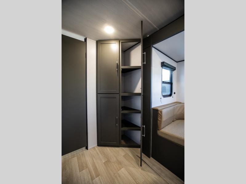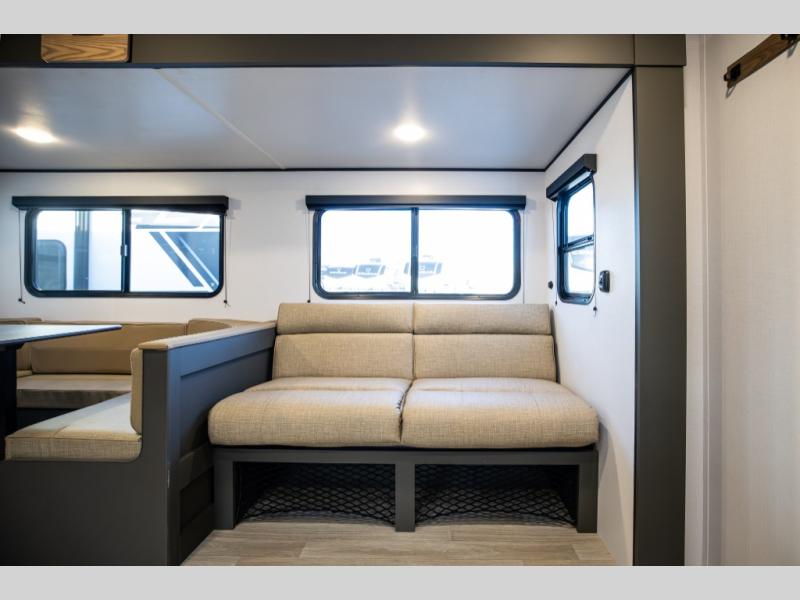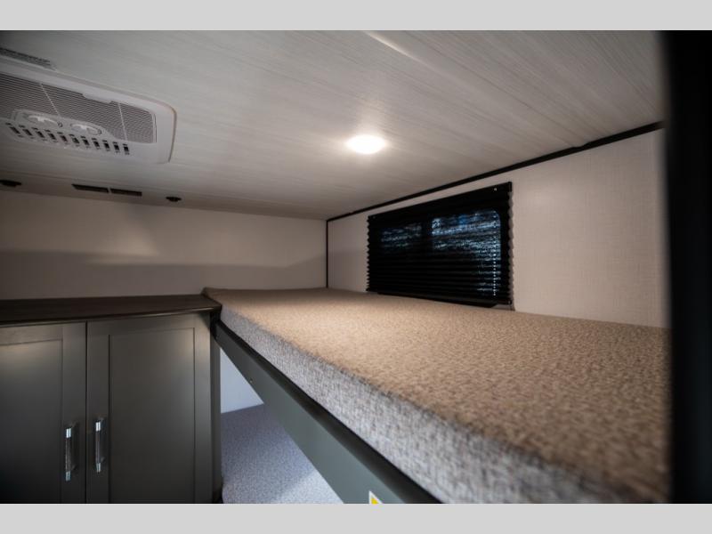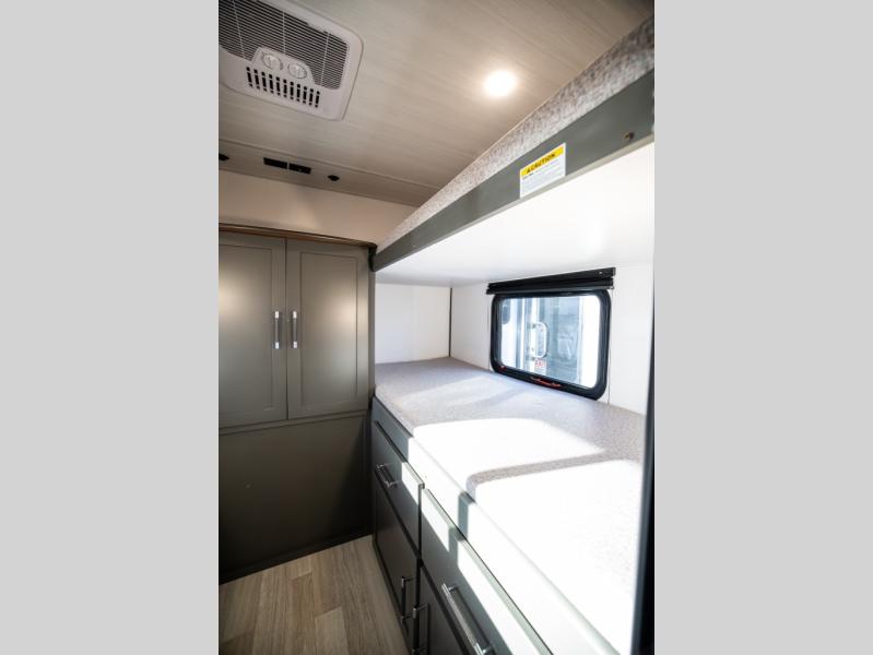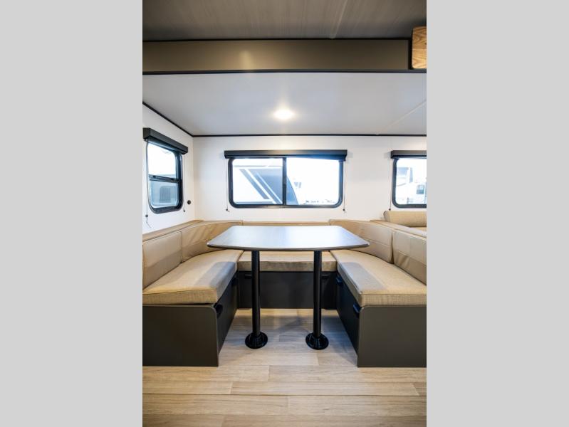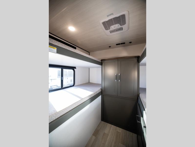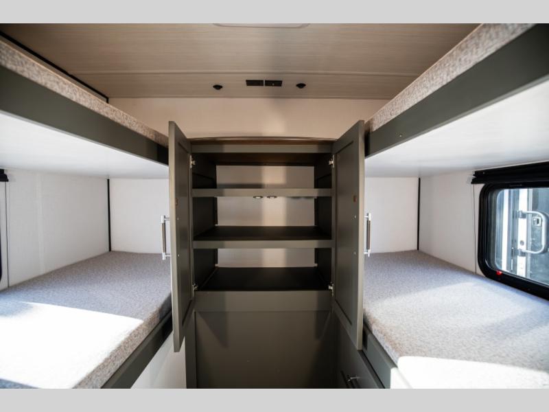 Perfect for epic road trips, serene camping excursions, or rejuvenating getaways! The trailer features four plush bunk beds, providing a cozy and inviting sleeping spot for kids or guests. A generous wardrobe offers ample storage for clothes and personal items. The full bathroom is impeccably designed and equipped with everything you need. Further, the spacious U-shaped dinette provides a warm and welcoming spot for meals and snacks, while the comfortable jackknife sofa offers a relaxing seating area that can be converted into a luxurious sleeping space. The high-performance 12V refrigerator keeps drinks and snacks perfectly chilled, and the rapid-cooking microwave provides quick reheating. Finally, after a long day of adventures, relax in the front bedroom featuring a sumptuous queen-sized bed with spacious wardrobes and convenient nightstands on each side, providing plenty of storage for your finest attire and personal items.