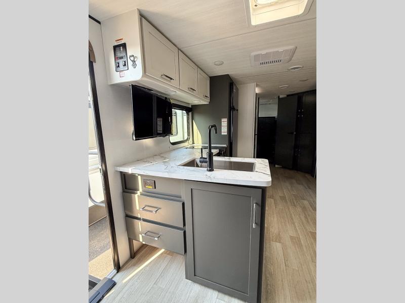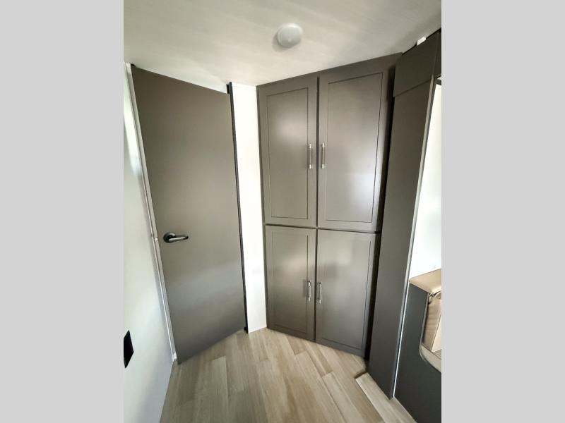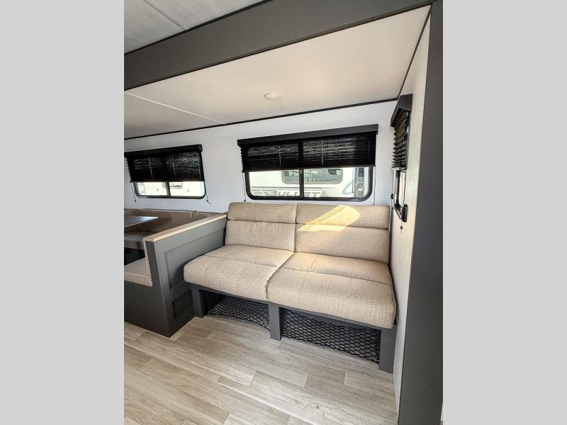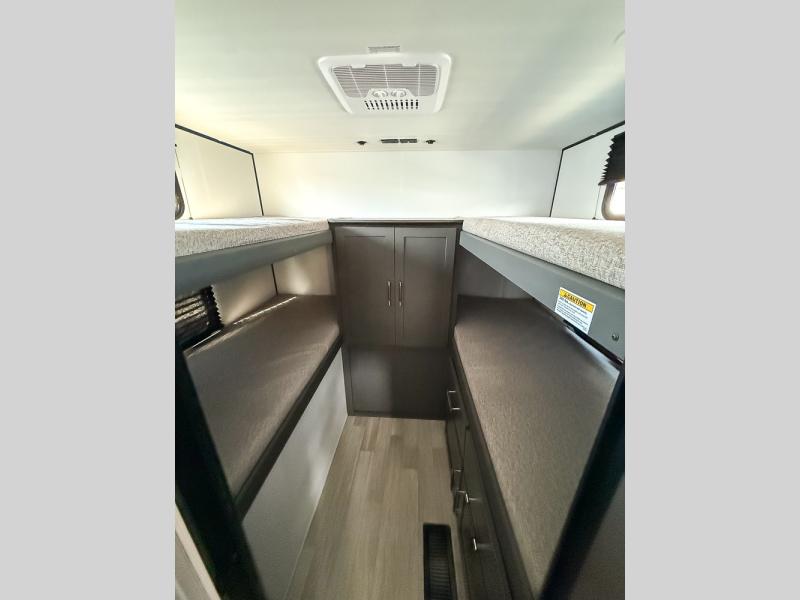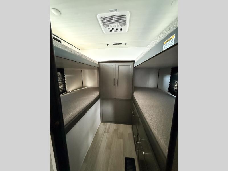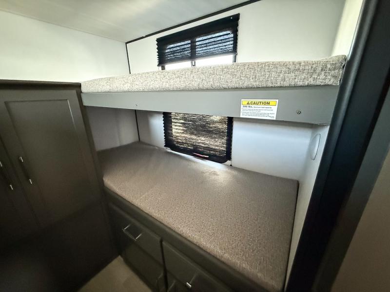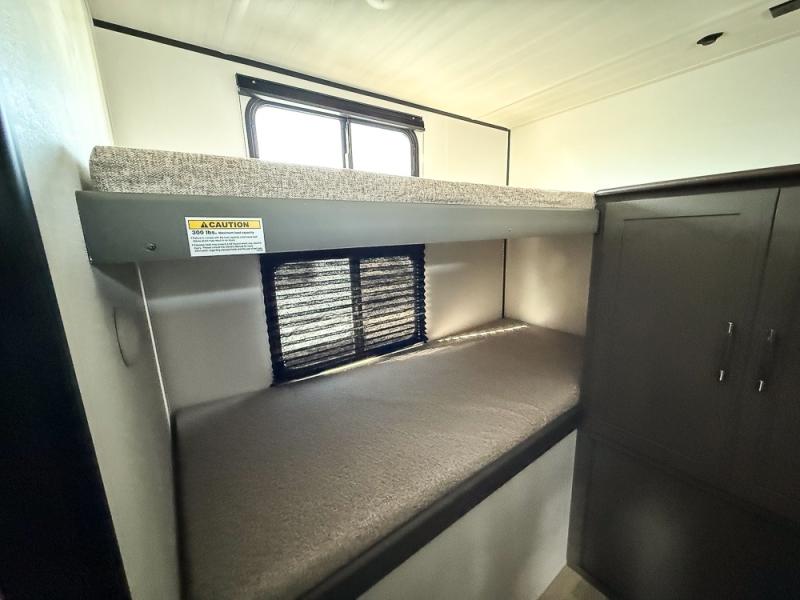 Perfect for epic road trips, serene camping excursions, or rejuvenating getaways! The trailer features four plush bunk beds, providing a cozy and inviting sleeping spot for kids or guests. A generous wardrobe offers ample storage for clothes and personal items. The full bathroom is impeccably designed and equipped with everything you need. Further, the spacious U-shaped dinette provides a warm and welcoming spot for meals and snacks, while the comfortable jackknife sofa offers a relaxing seating area that can be converted into a luxurious sleeping space. The high-performance 12V refrigerator keeps drinks and snacks perfectly chilled, and the rapid-cooking microwave provides quick reheating. Finally, after a long day of adventures, relax in the front bedroom featuring a sumptuous queen-sized bed with spacious wardrobes and convenient nightstands on each side, providing plenty of storage for your finest attire and personal items.