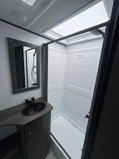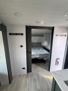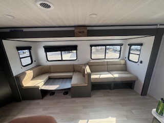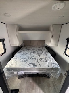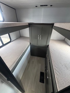 Perfect for epic road trips, serene camping excursions, or rejuvenating getaways! The trailer features four plush bunk beds, providing a cozy and inviting sleeping spot for kids or guests. A generous wardrobe offers ample storage for clothes and personal items. The full bathroom is impeccably designed and equipped with everything you need. Further, the spacious U-shaped dinette provides a warm and welcoming spot for meals and snacks, while the comfortable jackknife sofa offers a relaxing seating area that can be converted into a luxurious sleeping space. The high-performance 12V refrigerator keeps drinks and snacks perfectly chilled, and the rapid-cooking microwave provides quick reheating. Finally, after a long day of adventures, relax in the front bedroom featuring a sumptuous queen-sized bed with spacious wardrobes and convenient nightstands on each side, providing plenty of storage for your finest attire and personal items.