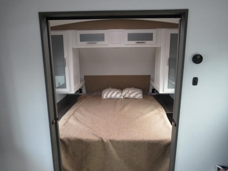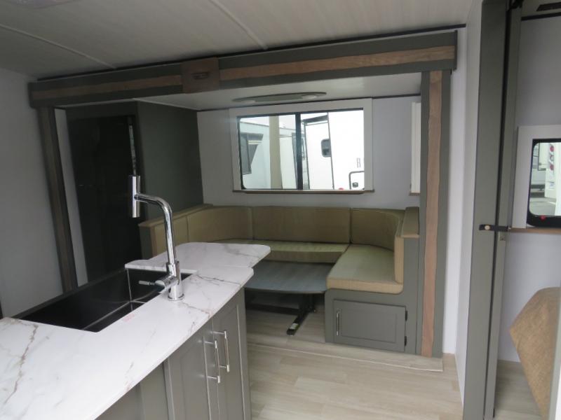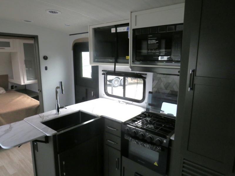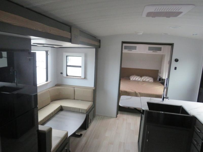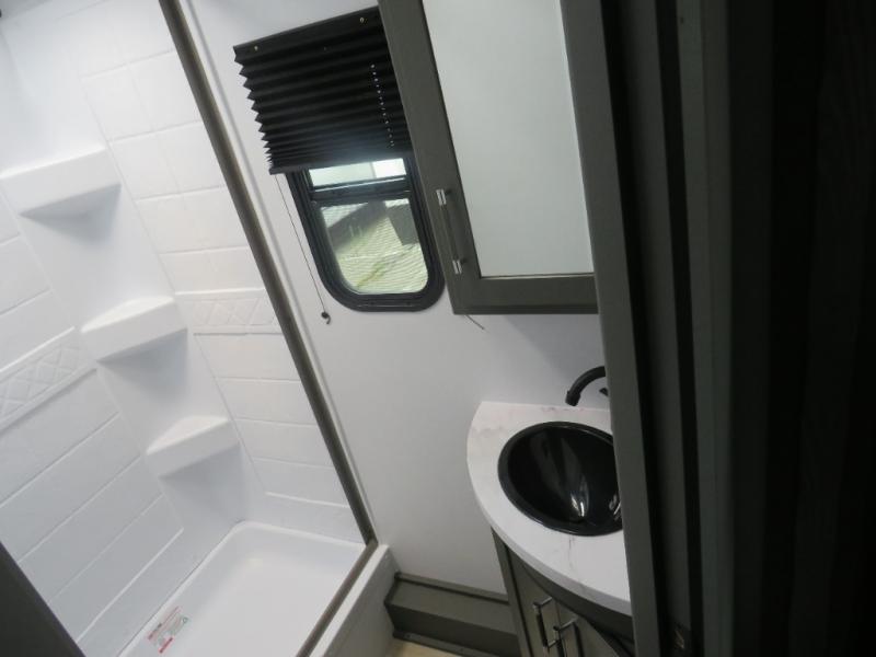 The Bullet Crossfire by Keystone are the perfect lightweight travel travel for rookie campers to seasoned RVers! Each one is built with a one-piece polypropylene underbelly, a fully walkable roof, and a high impact thermoset resin painted front cap for added durability. There is also a Dexter Torsion axle rubber ride suspension and Goodyear Endurance tires for a smooth tow plus a power tongue jack and power stabilizer jacks for easy set up. The interior will have you feeling right at home with deluxe night shades, updated Tranquil Timber decor, residential Beauflor vinyl flooring, and seamless kitchen countertops.