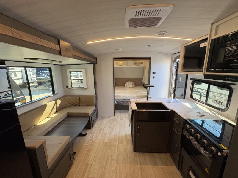 The Bullet Crossfire by Keystone are the perfect lightweight travel travel for rookie campers to seasoned RVers! Each one is built with a one-piece polypropylene underbelly, a fully walkable roof, and a high impact thermoset resin painted front cap for added durability. There is also a Dexter Torsion axle rubber ride suspension and Goodyear Endurance tires for a smooth tow plus a power tongue jack and power stabilizer jacks for easy set up. The interior will have you feeling right at home with deluxe night shades, updated Tranquil Timber decor, residential Beauflor vinyl flooring, and seamless kitchen countertops.