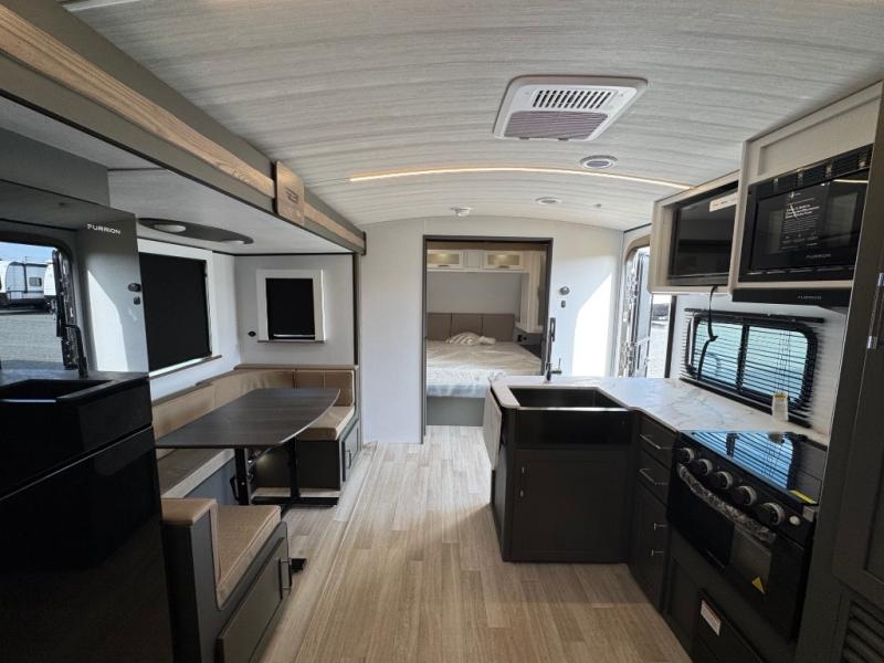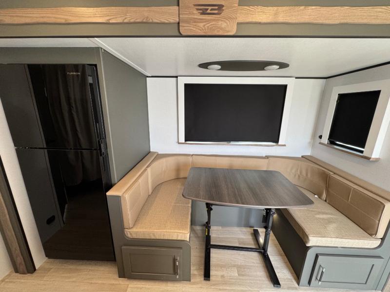 The Bullet Crossfire by Keystone are the perfect lightweight travel travel for rookie campers to seasoned RVers! Each one is built with a one-piece polypropylene underbelly, a fully walkable roof, and a high impact thermoset resin painted front cap for added durability. There is also a Dexter Torsion axle rubber ride suspension and Goodyear Endurance tires for a smooth tow plus a power tongue jack and power stabilizer jacks for easy set up. The interior will have you feeling right at home with deluxe night shades, updated Tranquil Timber decor, residential Beauflor vinyl flooring, and seamless kitchen countertops.