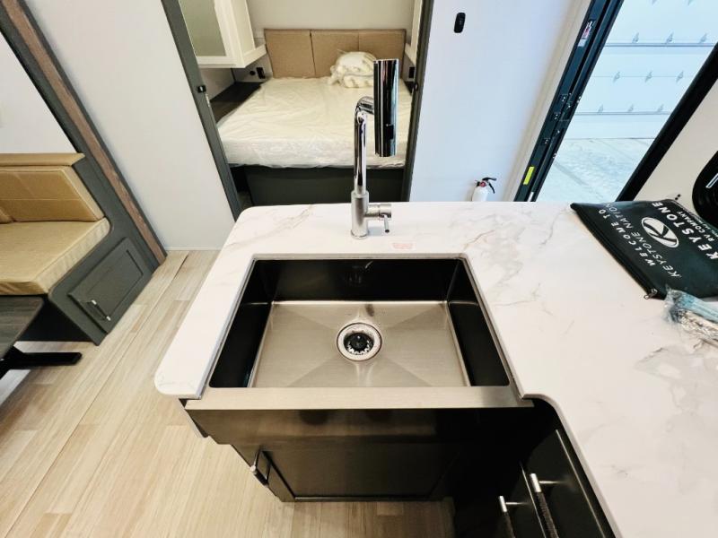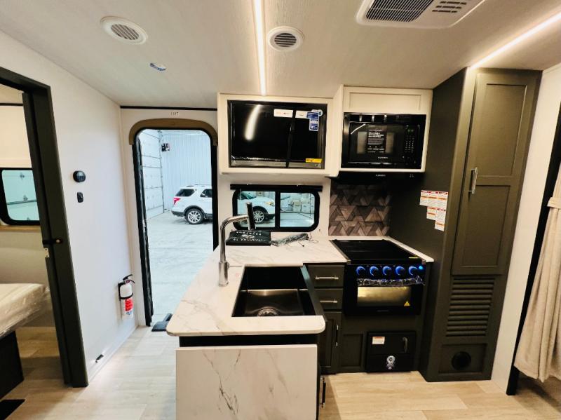 The Bullet Crossfire by Keystone are the perfect lightweight travel travel for rookie campers to seasoned RVers! Each one is built with a one-piece polypropylene underbelly, a fully walkable roof, and a high impact thermoset resin painted front cap for added durability. There is also a Dexter Torsion axle rubber ride suspension and Goodyear Endurance tires for a smooth tow plus a power tongue jack and power stabilizer jacks for easy set up. The interior will have you feeling right at home with deluxe night shades, updated Tranquil Timber decor, residential Beauflor vinyl flooring, and seamless kitchen countertops.