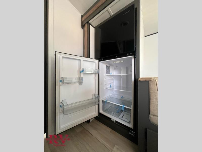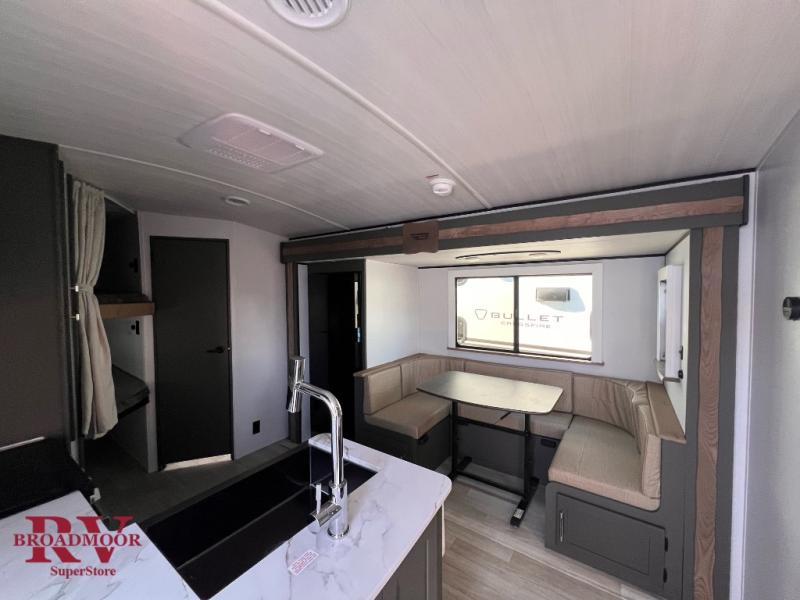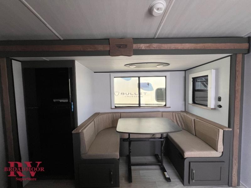The Bullet Crossfire by Keystone are the perfect lightweight travel travel for rookie campers to seasoned RVers! Each one is built with a one-piece polypropylene underbelly, a fully walkable roof, and a high impact thermoset resin painted front cap for added durability. There is also a Dexter Torsion axle rubber ride suspension and Goodyear Endurance tires for a smooth tow plus a power tongue jack and power stabilizer jacks for easy set up. The interior will have you feeling right at home with deluxe night shades, updated Tranquil Timber decor, residential Beauflor vinyl flooring, and seamless kitchen countertops.