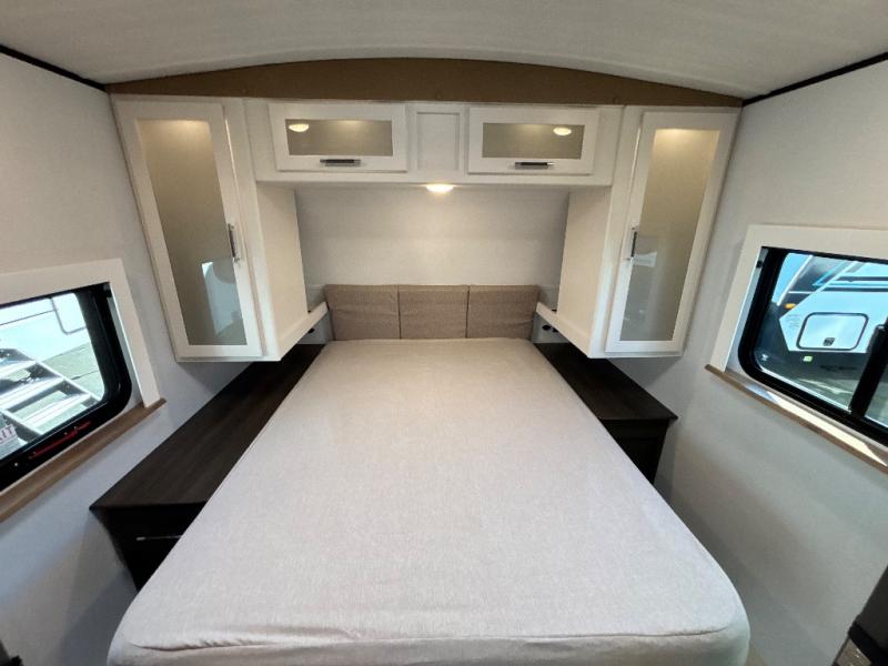 The Bullet Crossfire by Keystone are the perfect lightweight travel travel for rookie campers to seasoned RVers! Each one is built with a one-piece polypropylene underbelly, a fully walkable roof, and a high impact thermoset resin painted front cap for added durability. There is also a Dexter Torsion axle rubber ride suspension and Goodyear Endurance tires for a smooth tow plus a power tongue jack and power stabilizer jacks for easy set up. The interior will have you feeling right at home with deluxe night shades, updated Tranquil Timber decor, residential Beauflor vinyl flooring, and seamless kitchen countertops.