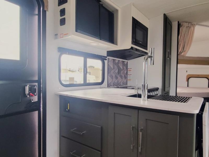 The Bullet Crossfire by Keystone are the perfect lightweight travel travel for rookie campers to seasoned RVers! Each one is built with a one-piece polypropylene underbelly, a fully walkable roof, and a high impact thermoset resin painted front cap for added durability. There is also a Dexter Torsion axle rubber ride suspension and Goodyear Endurance tires for a smooth tow plus a power tongue jack and power stabilizer jacks for easy set up. The interior will have you feeling right at home with deluxe night shades, updated Tranquil Timber decor, residential Beauflor vinyl flooring, and seamless kitchen countertops.