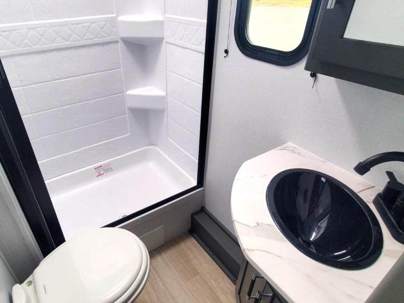 The Bullet Crossfire by Keystone are the perfect lightweight travel travel for rookie campers to seasoned RVers! Each one is built with a one-piece polypropylene underbelly, a fully walkable roof, and a high impact thermoset resin painted front cap for added durability. There is also a Dexter Torsion axle rubber ride suspension and Goodyear Endurance tires for a smooth tow plus a power tongue jack and power stabilizer jacks for easy set up. The interior will have you feeling right at home with deluxe night shades, updated Tranquil Timber decor, residential Beauflor vinyl flooring, and seamless kitchen countertops.