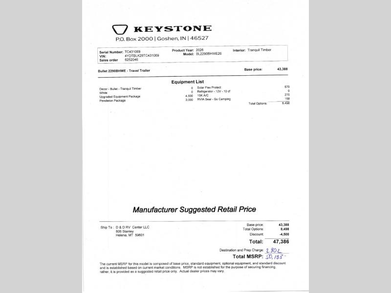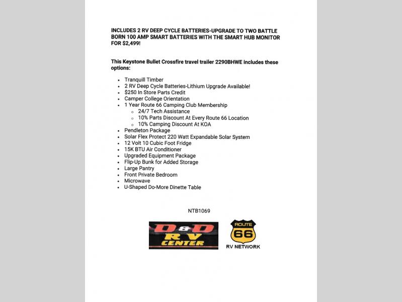 This Keystone Bullet Crossfire travel trailer 2290BHWE includes these options: