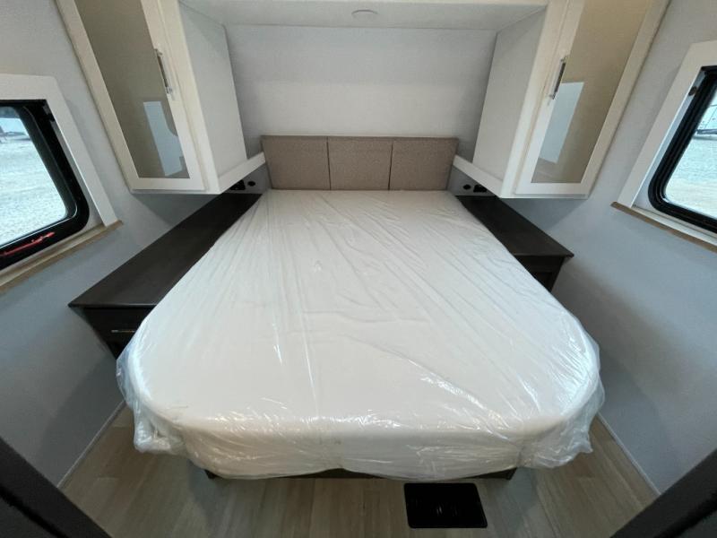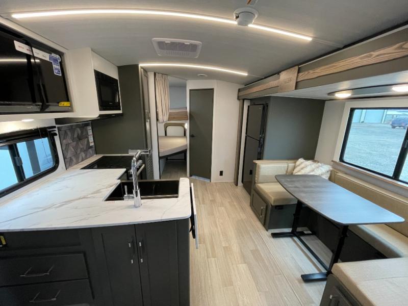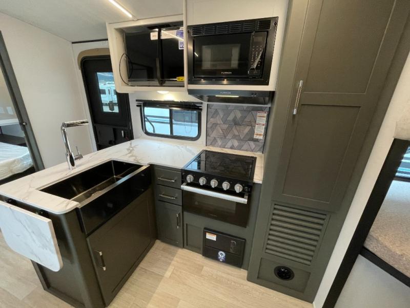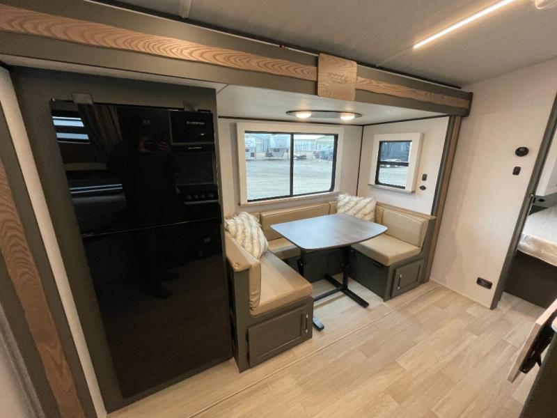 The Bullet Crossfire by Keystone are the perfect lightweight travel travel for rookie campers to seasoned RVers! Each one is built with a one-piece polypropylene underbelly, a fully walkable roof, and a high impact thermoset resin painted front cap for added durability. There is also a Dexter Torsion axle rubber ride suspension and Goodyear Endurance tires for a smooth tow plus a power tongue jack and power stabilizer jacks for easy set up. The interior will have you feeling right at home with deluxe night shades, updated Tranquil Timber decor, residential Beauflor vinyl flooring, and seamless kitchen countertops.