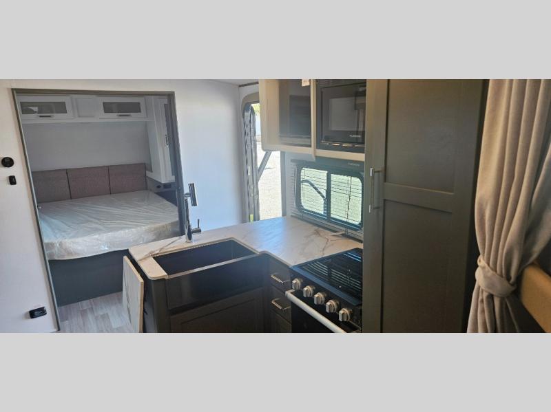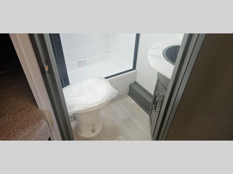 The Bullet Crossfire by Keystone are the perfect lightweight travel travel for rookie campers to seasoned RVers! Each one is built with a one-piece polypropylene underbelly, a fully walkable roof, and a high impact thermoset resin painted front cap for added durability. There is also a Dexter Torsion axle rubber ride suspension and Goodyear Endurance tires for a smooth tow plus a power tongue jack and power stabilizer jacks for easy set up. The interior will have you feeling right at home with deluxe night shades, updated Tranquil Timber decor, residential Beauflor vinyl flooring, and seamless kitchen countertops.