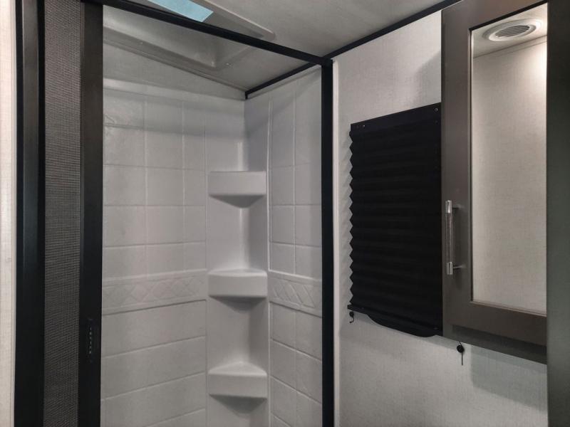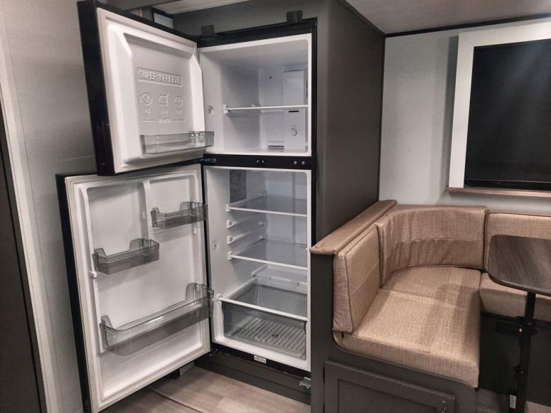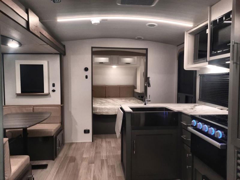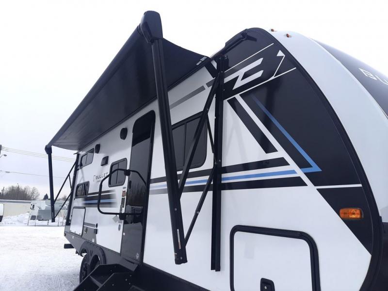 The Bullet Crossfire by Keystone are the perfect lightweight travel travel for rookie campers to seasoned RVers! Each one is built with a one-piece polypropylene underbelly, a fully walkable roof, and a high impact thermoset resin painted front cap for added durability. There is also a Dexter Torsion axle rubber ride suspension and Goodyear Endurance tires for a smooth tow plus a power tongue jack and power stabilizer jacks for easy set up. The interior will have you feeling right at home with deluxe night shades, updated Tranquil Timber decor, residential Beauflor vinyl flooring, and seamless kitchen countertops.