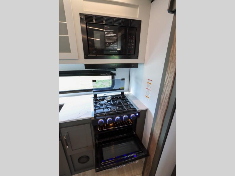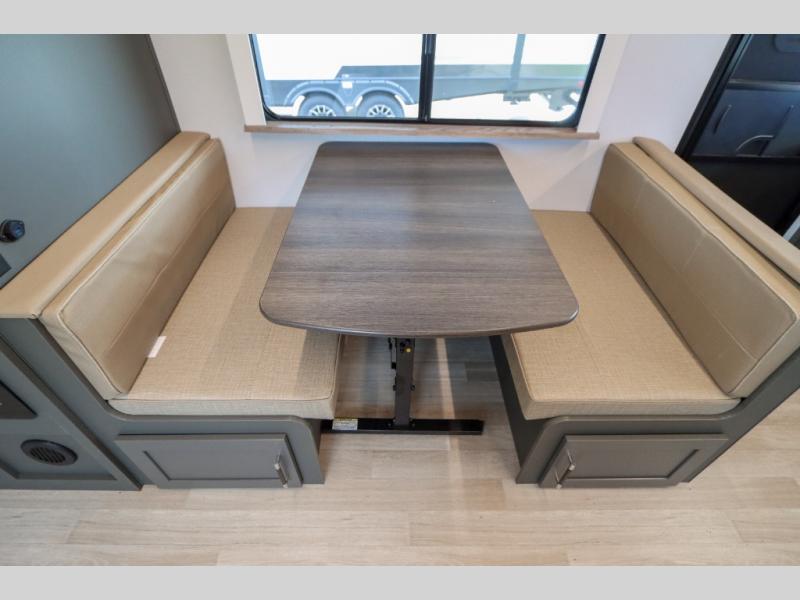 The Bullet Crossfire by Keystone are the perfect lightweight travel travel for rookie campers to seasoned RVers! Each one is built with a one-piece polypropylene underbelly, a fully walkable roof, and a high impact thermoset resin painted front cap for added durability. There is also a Dexter Torsion axle rubber ride suspension and Goodyear Endurance tires for a smooth tow plus a power tongue jack and power stabilizer jacks for easy set up. The interior will have you feeling right at home with deluxe night shades, updated Tranquil Timber decor, residential Beauflor vinyl flooring, and seamless kitchen countertops.