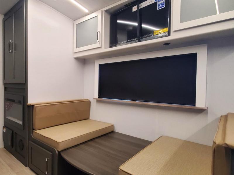 One step inside this dual entry travel trailer and you'll be sold! The rear kitchen features ample counter space to prep meals, and the do-more dinette table provides a place to dine together. There is also an outdoor kitchen with a griddle and mini fridge plus a 19' awning if you want to cook and eat outdoors. Two pantries and a 12V refrigerator will let you keep food stocked, and the tri-fold sofa slide provides sleeping space for guests. A walk-thru bath will create a front master bedroom you are sure to love, complete with a queen bed plus dual nightstands and dual wardrobes to keep everything tidy!