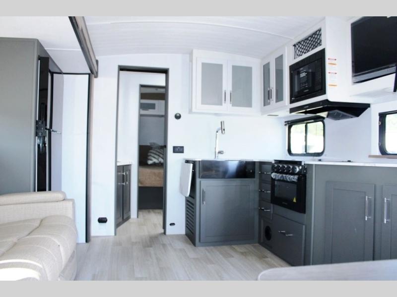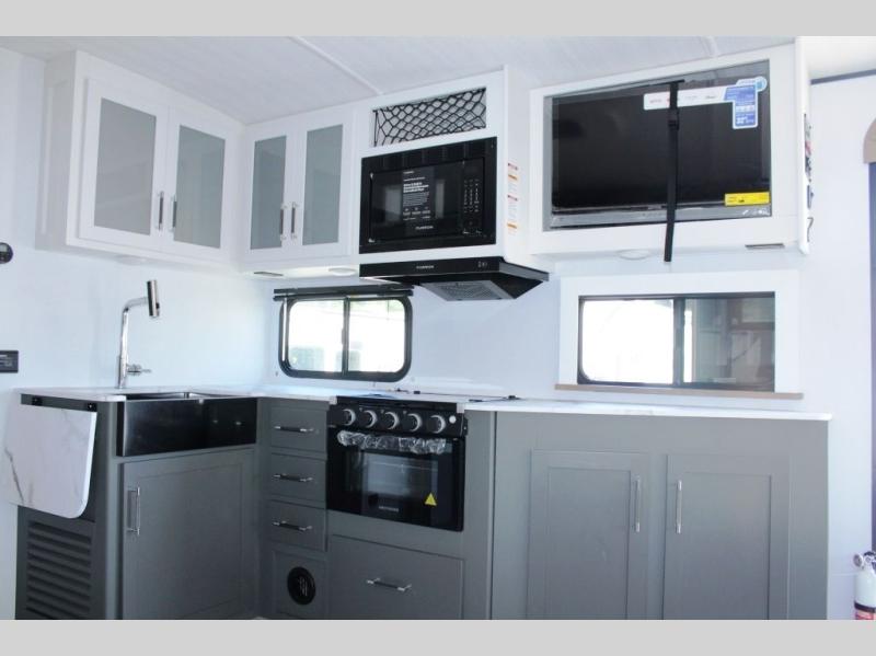 The Bullet Crossfire by Keystone are the perfect lightweight travel travel for rookie campers to seasoned RVers! Each one is built with a one-piece polypropylene underbelly, a fully walkable roof, and a high impact thermoset resin painted front cap for added durability. There is also a Dexter Torsion axle rubber ride suspension and Goodyear Endurance tires for a smooth tow plus a power tongue jack and power stabilizer jacks for easy set up. The interior will have you feeling right at home with deluxe night shades, updated Tranquil Timber decor, residential Beauflor vinyl flooring, and seamless kitchen countertops.