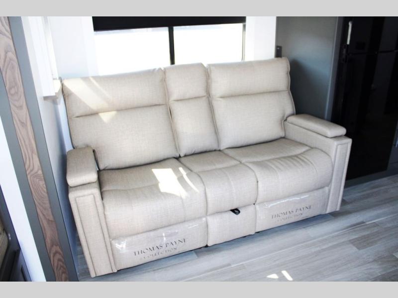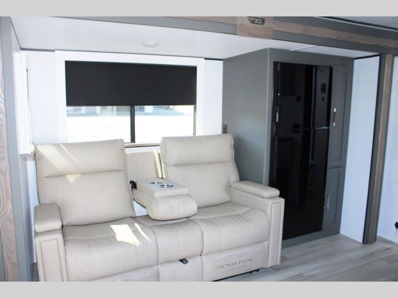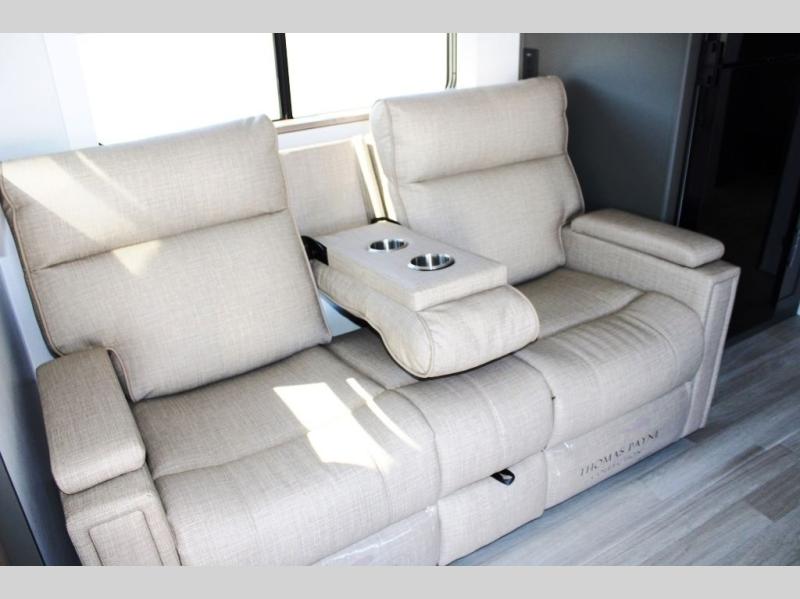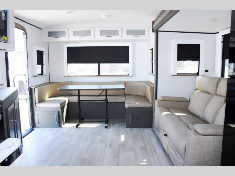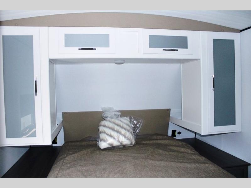It won't be hard to find comfort in this dual entry travel trailer for six! You can enter in through the front private bedroom or the rear living area, and there is a large slide out for added space to move about. Spend your evenings on the tri-fold sofa across from the TV, around the U-shaped dinette, or outside under the 19' awning. You might even like to add the optional luxury style cinema theater seating in place of the sofa for more comfort! The walk-through bath will provide easy access for everyone, and the front master bedroom is sure to feel just like home with its queen bed and dual wardrobes!