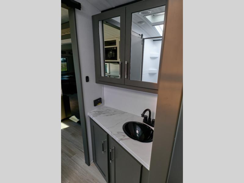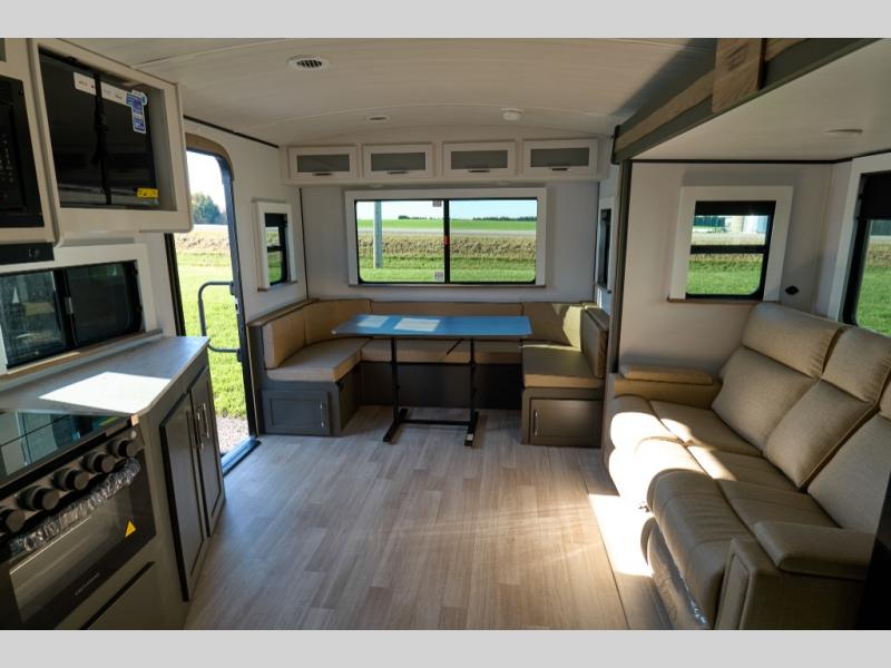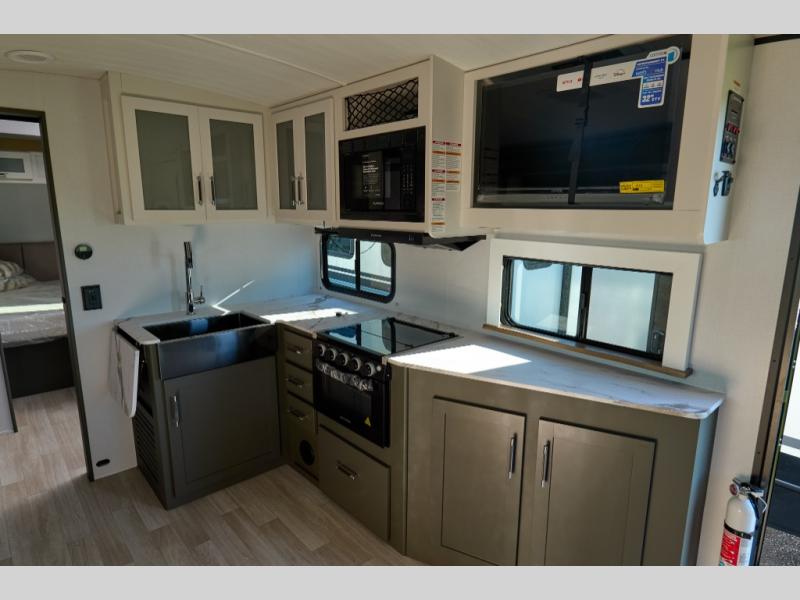 The Bullet Crossfire by Keystone are the perfect lightweight travel travel for rookie campers to seasoned RVers! Each one is built with a one-piece polypropylene underbelly, a fully walkable roof, and a high impact thermoset resin painted front cap for added durability. There is also a Dexter Torsion axle rubber ride suspension and Goodyear Endurance tires for a smooth tow plus a power tongue jack and power stabilizer jacks for easy set up. The interior will have you feeling right at home with deluxe night shades, updated Tranquil Timber decor, residential Beauflor vinyl flooring, and seamless kitchen countertops.