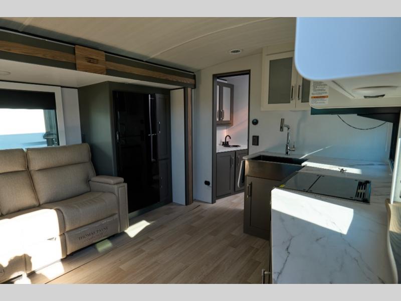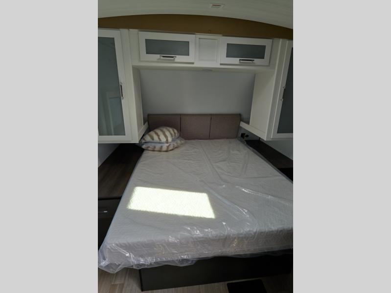 It won't be hard to find comfort in this dual entry travel trailer for six! You can enter in through the front private bedroom or the rear living area, and there is a large slide out for added space to move about. Spend your evenings on the tri-fold sofa across from the TV, around the U-shaped dinette, or outside under the 19' awning. You might even like to add the optional luxury style cinema theater seating in place of the sofa for more comfort! The walk-through bath will provide easy access for everyone, and the front master bedroom is sure to feel just like home with its queen bed and dual wardrobes!