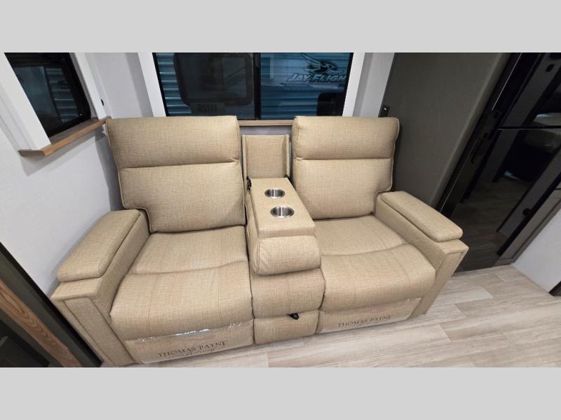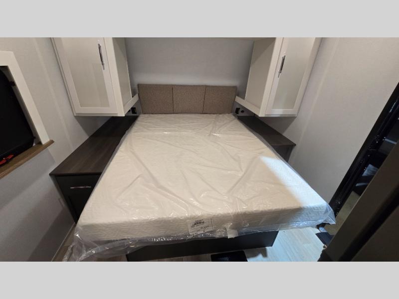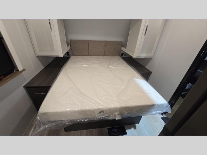 It won't be hard to find comfort in this dual entry travel trailer for six! You can enter in through the front private bedroom or the rear living area, and there is a large slide out for added space to move about. Spend your evenings on the tri-fold sofa across from the TV, around the U-shaped dinette, or outside under the 19' awning. You might even like to add the optional luxury style cinema theater seating in place of the sofa for more comfort! The walk-through bath will provide easy access for everyone, and the front master bedroom is sure to feel just like home with its queen bed and dual wardrobes!