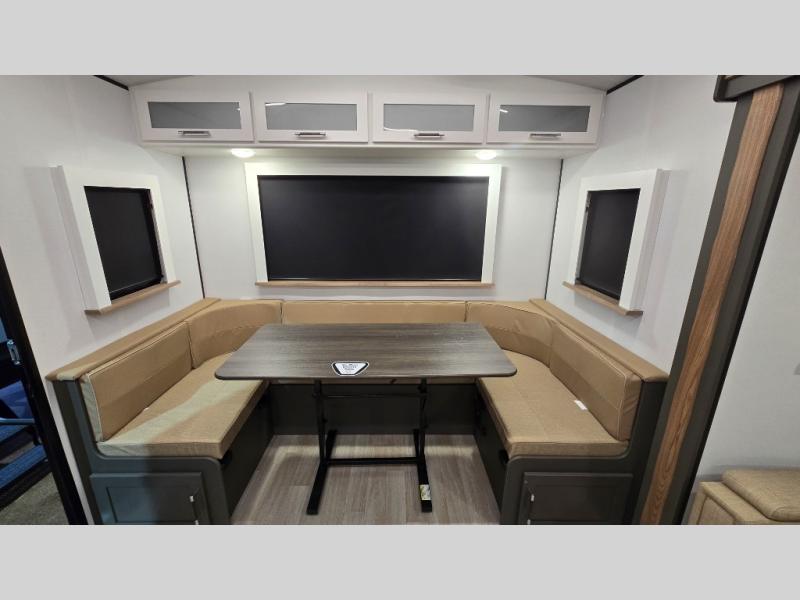 The Bullet Crossfire by Keystone are the perfect lightweight travel travel for rookie campers to seasoned RVers! Each one is built with a one-piece polypropylene underbelly, a fully walkable roof, and a high impact thermoset resin painted front cap for added durability. There is also a Dexter Torsion axle rubber ride suspension and Goodyear Endurance tires for a smooth tow plus a power tongue jack and power stabilizer jacks for easy set up. The interior will have you feeling right at home with deluxe night shades, updated Tranquil Timber decor, residential Beauflor vinyl flooring, and seamless kitchen countertops.