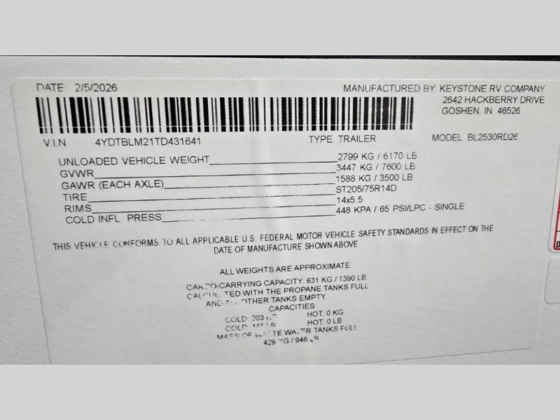 New 2026 Keystone RV Bullet Crossfire 2530RD Travel Trailer