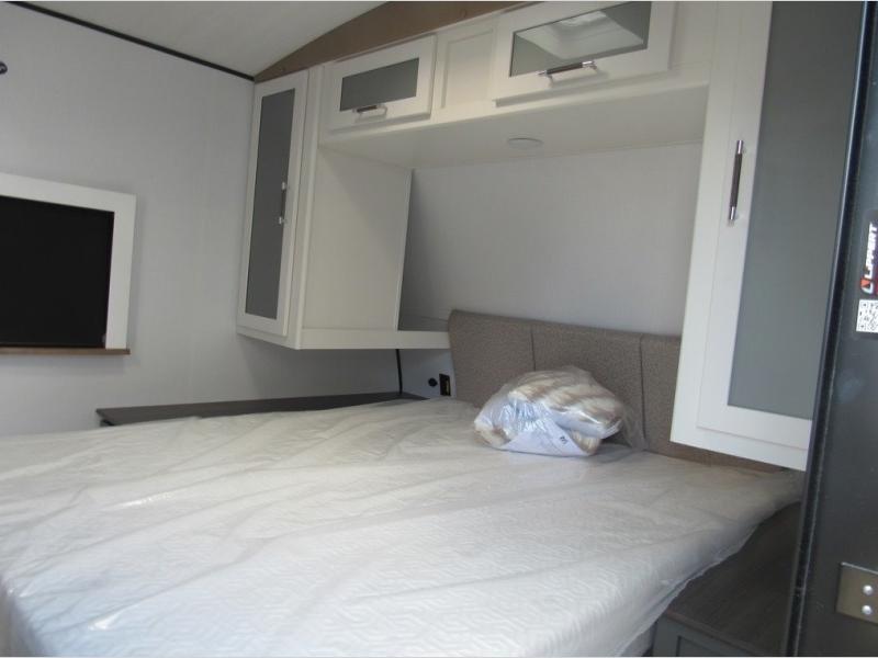It won't be hard to find comfort in this dual entry travel trailer for six! You can enter in through the front private bedroom or the rear living area, and there is a large slide out for added space to move about. Spend your evenings on the tri-fold sofa across from the TV, around the U-shaped dinette, or outside under the 19' awning. You might even like to add the optional luxury style cinema theater seating in place of the sofa for more comfort! The walk-through bath will provide easy access for everyone, and the front master bedroom is sure to feel just like home with its queen bed and dual wardrobes!