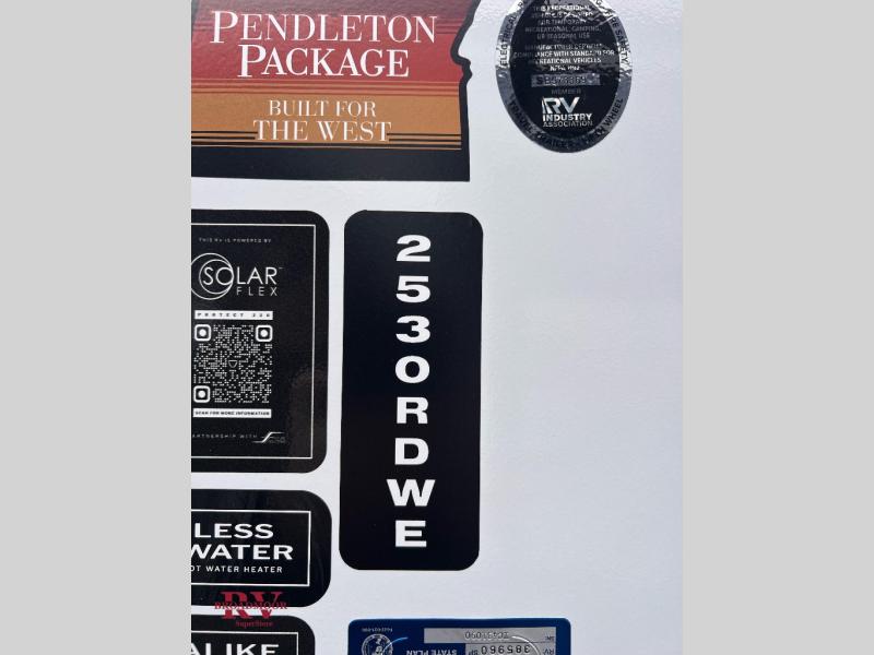 Optional Equipment Installed On This Unit: Upgraded Equipment Package, Pendleton Package, 15K AC, 50 AMP Service, Solar Flex Protect, Theater Seating