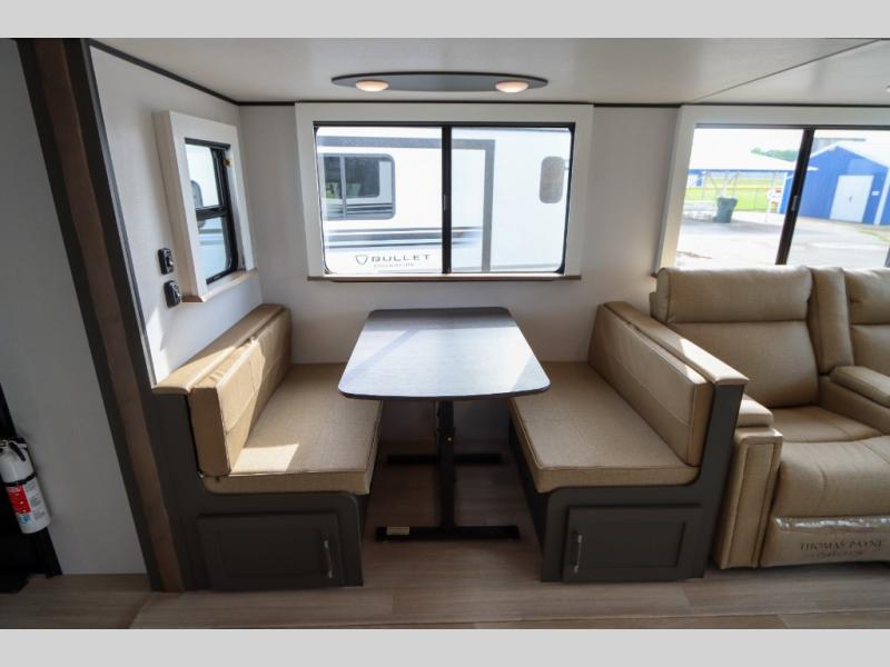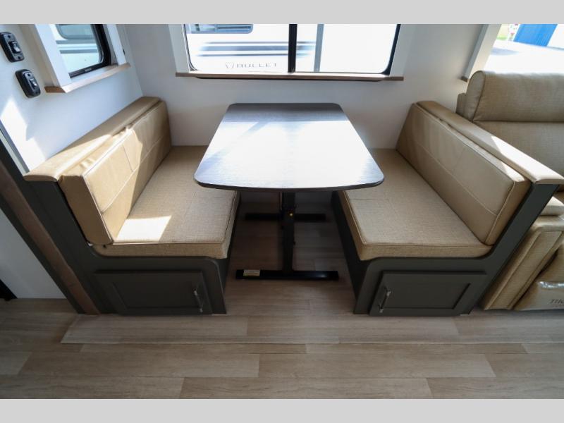 The Bullet Crossfire by Keystone are the perfect lightweight travel travel for rookie campers to seasoned RVers! Each one is built with a one-piece polypropylene underbelly, a fully walkable roof, and a high impact thermoset resin painted front cap for added durability. There is also a Dexter Torsion axle rubber ride suspension and Goodyear Endurance tires for a smooth tow plus a power tongue jack and power stabilizer jacks for easy set up. The interior will have you feeling right at home with deluxe night shades, updated Tranquil Timber decor, residential Beauflor vinyl flooring, and seamless kitchen countertops.