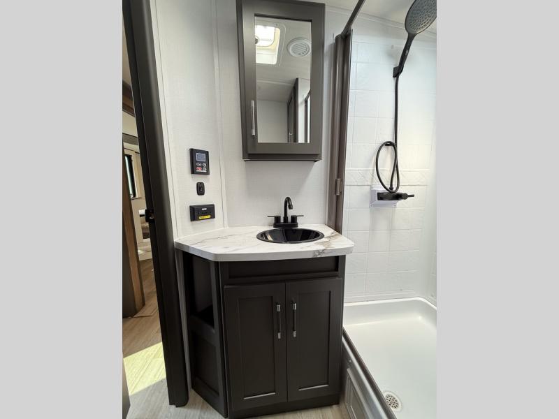 The Bullet Crossfire by Keystone are the perfect lightweight travel travel for rookie campers to seasoned RVers! Each one is built with a one-piece polypropylene underbelly, a fully walkable roof, and a high impact thermoset resin painted front cap for added durability. There is also a Dexter Torsion axle rubber ride suspension and Goodyear Endurance tires for a smooth tow plus a power tongue jack and power stabilizer jacks for easy set up. The interior will have you feeling right at home with deluxe night shades, updated Tranquil Timber decor, residential Beauflor vinyl flooring, and seamless kitchen countertops.