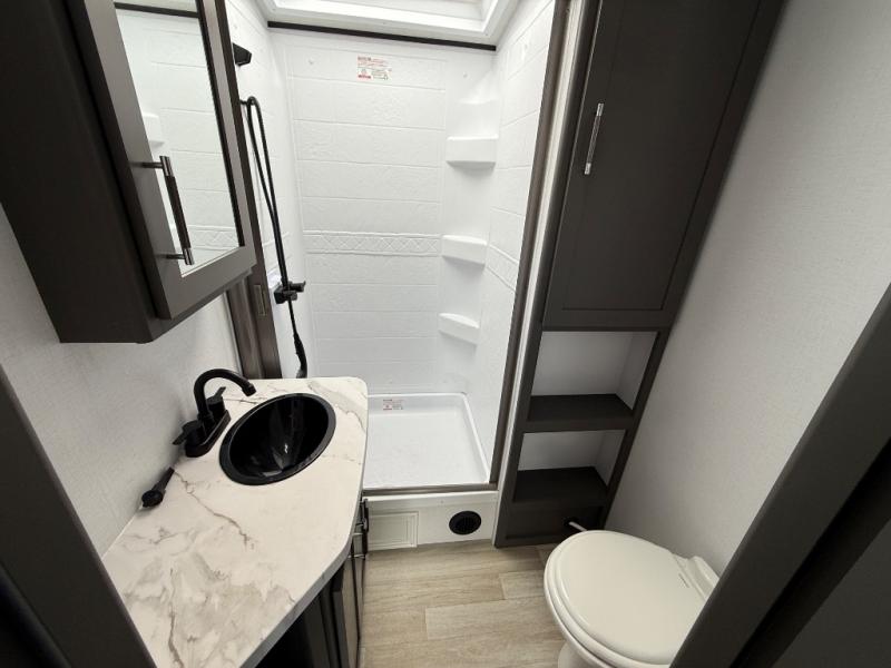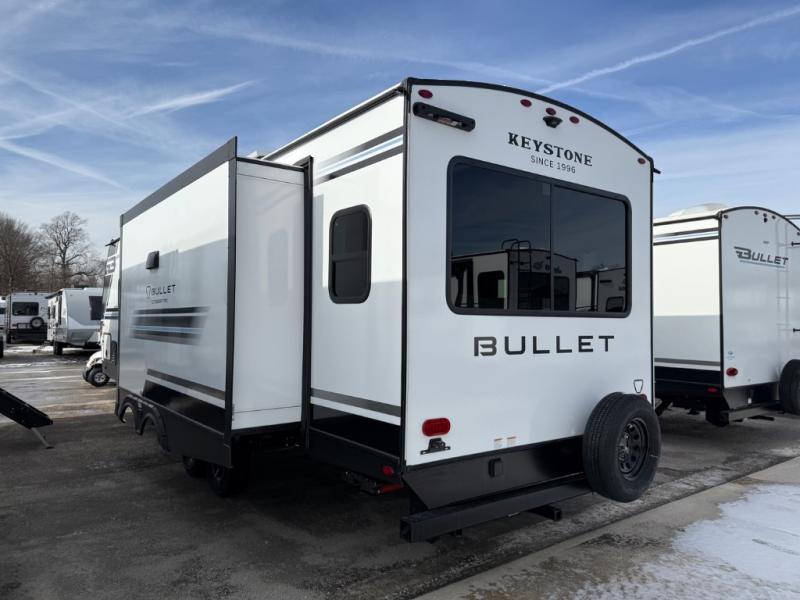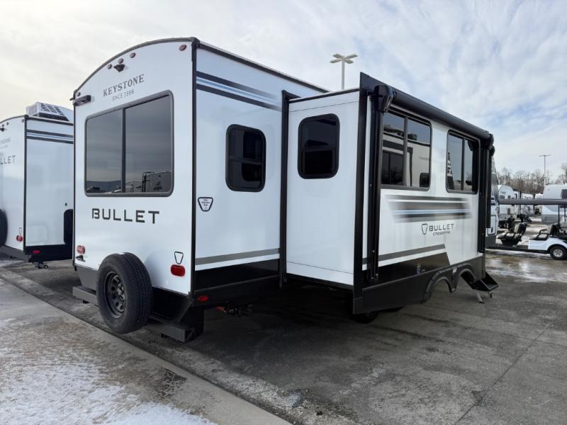 The Bullet Crossfire by Keystone are the perfect lightweight travel travel for rookie campers to seasoned RVers! Each one is built with a one-piece polypropylene underbelly, a fully walkable roof, and a high impact thermoset resin painted front cap for added durability. There is also a Dexter Torsion axle rubber ride suspension and Goodyear Endurance tires for a smooth tow plus a power tongue jack and power stabilizer jacks for easy set up. The interior will have you feeling right at home with deluxe night shades, updated Tranquil Timber decor, residential Beauflor vinyl flooring, and seamless kitchen countertops.